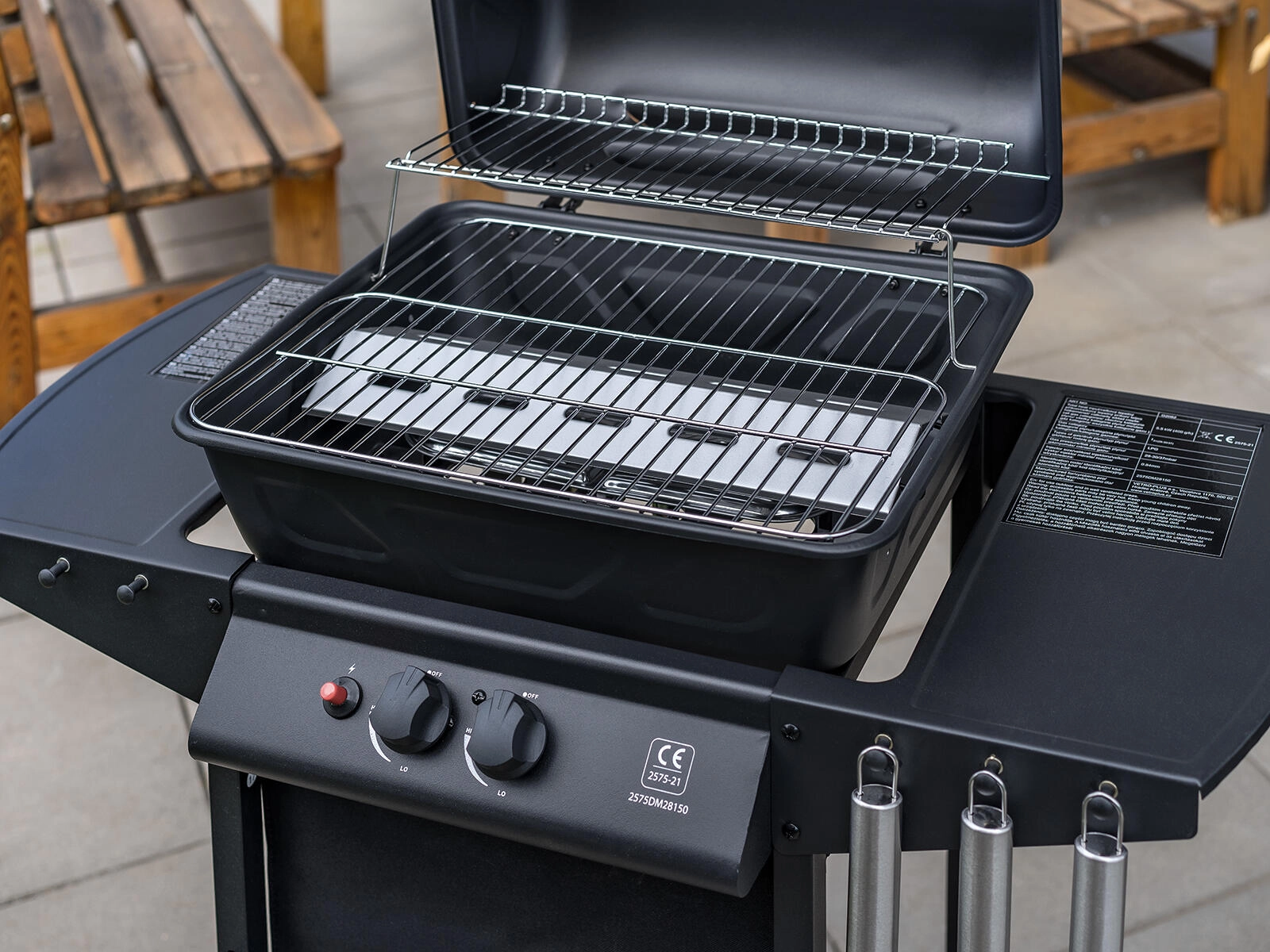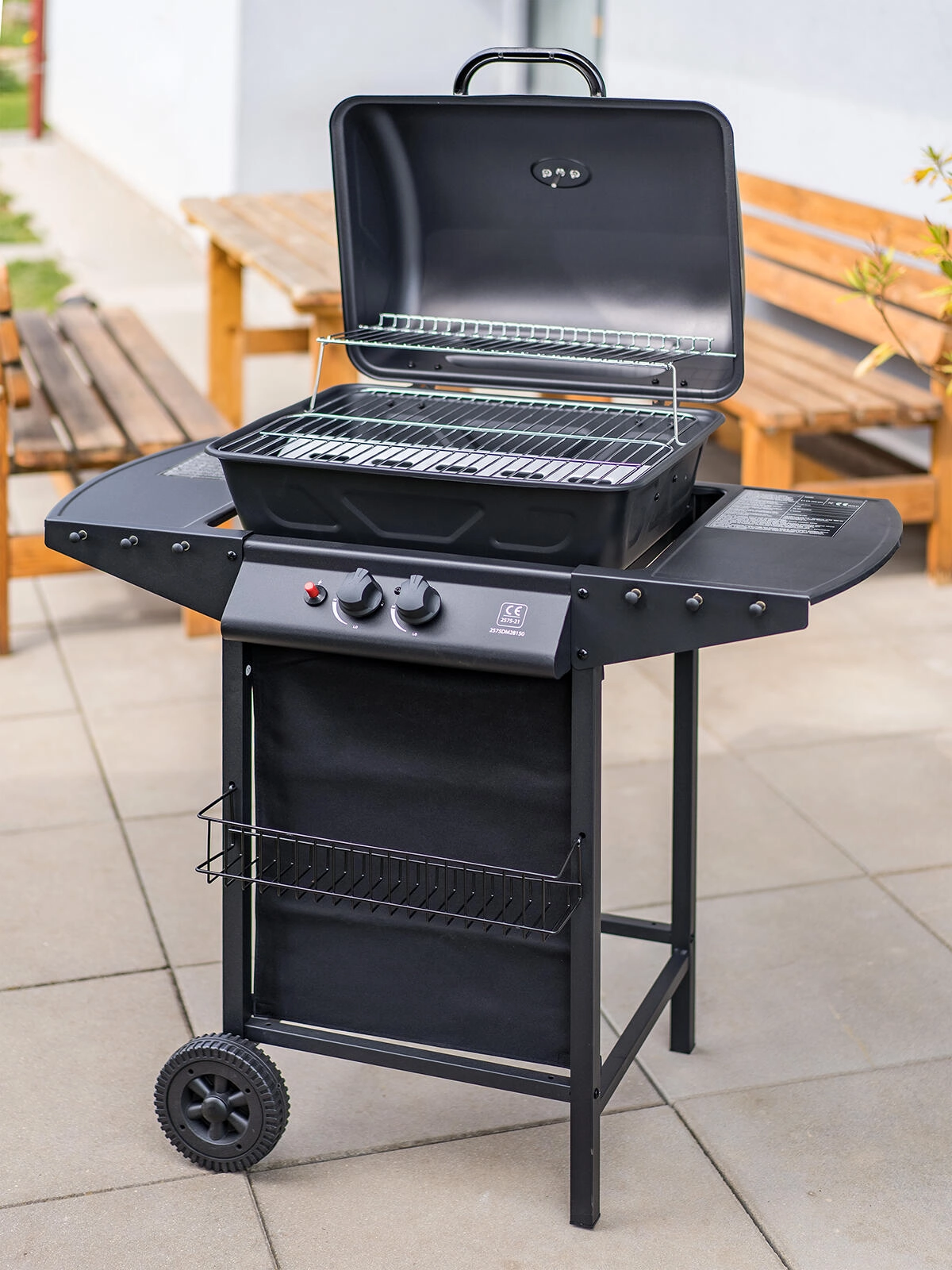A piezo gyújtás gyors indítást biztosít, a két masszív kerék pedig megkönnyíti a grill áthelyezését a teraszon vagy a kertben.