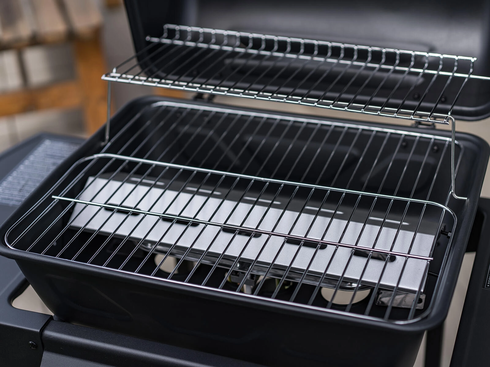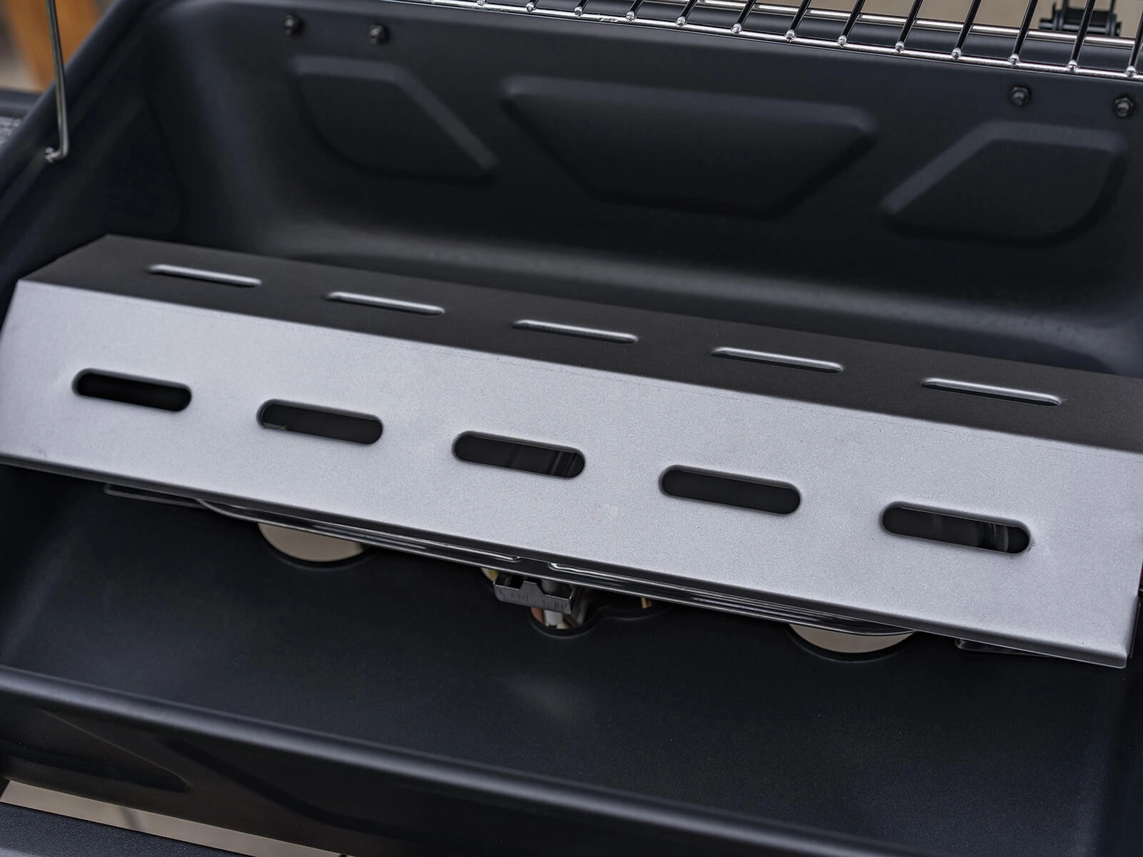 A praktikus melegítőrács melegen tartja a kész ételeket, vagy segít a péksütemények megmelegítésében. Két oldalsó lerakófelület három akasztóval az eszközöknek és egy elülső kosár elegendő helyet ad a pácoknak és kellékeknek. A két keréknek köszönhetően a grill könnyen áthelyezhető az ideális helyre. Igény szerint fedéllel vagy anélkül is grillezhet.