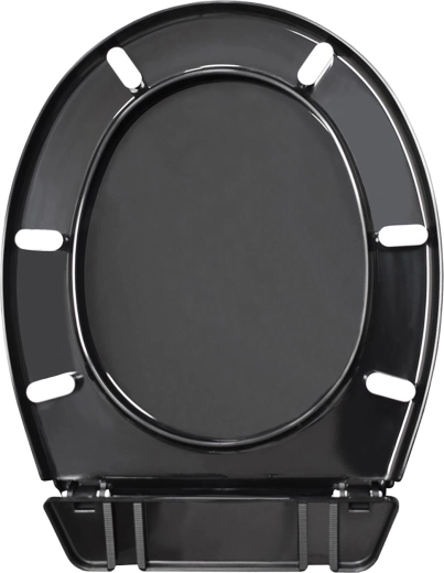 Az univerzális fekete WC-ülőke ideális választás modern fürdőszobákba. Minőségi polipropilénből készült, kopásálló és könnyen tisztítható. Az állítható rögzítőknek köszönhetően egyszerűen hozzáigazítható a legtöbb szabványos WC-csészéhez.