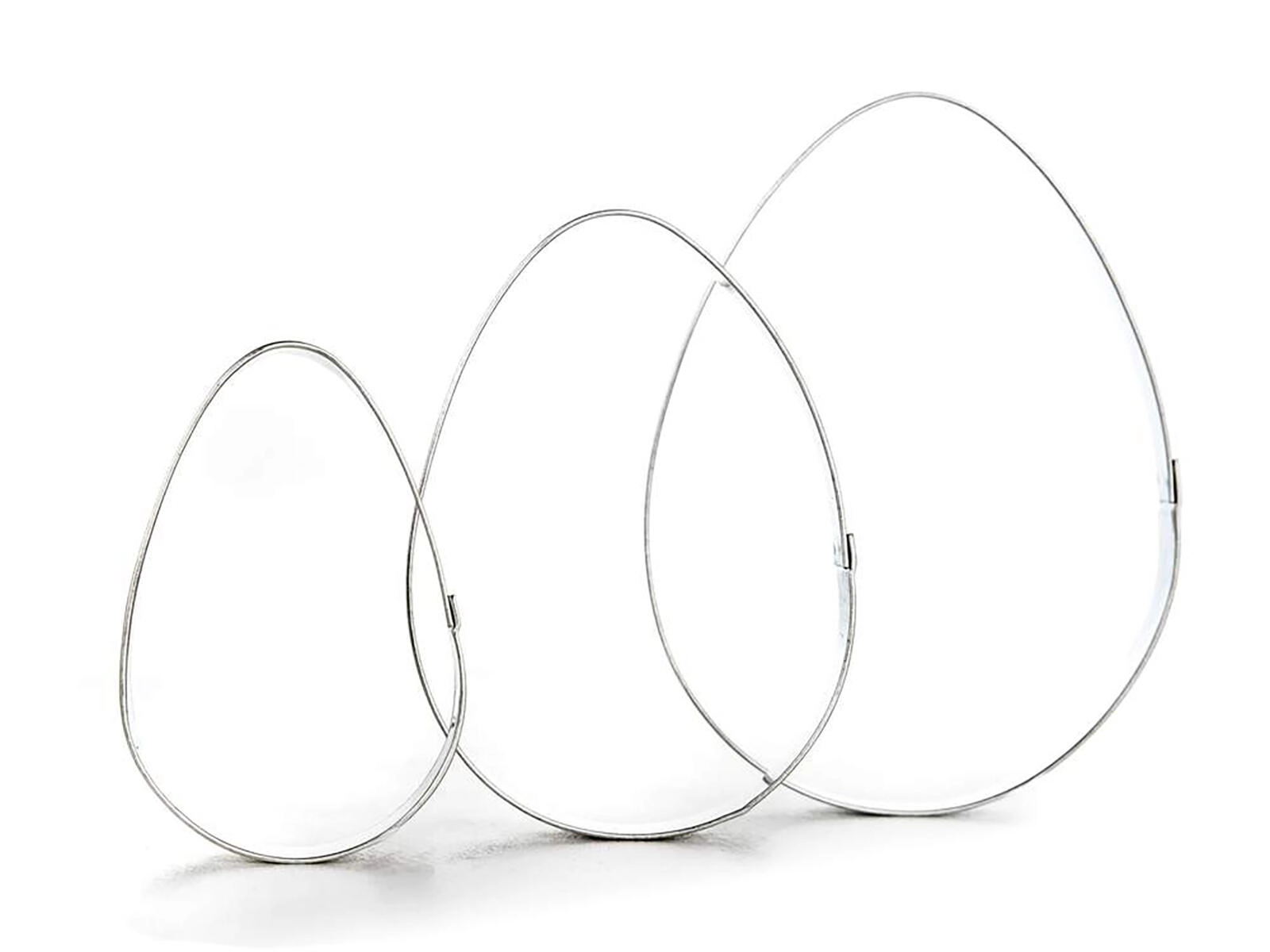 Praktikus készlet 3 tojás alakú kiszúróval a húsvéti és egész éves sütéshez. Tartós ónbevonatú lemez a tiszta vágásért és hosszú élettartamért, három méret a kreatív díszítéshez és a formák rétegezéséhez.