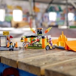 A LEGO City Stuntz Kaszkadőr park lehetővé teszi, hogy felpörgesd a lendkerekes motort és bemutass látványos trükköket. Több rámpával és tüzes akadályokkal a készlet végtelen lehetőséget kínál az elképzelt játékra. Más LEGO City Stuntz szettekkel kombinálva még nagyobb kaszkadőr parkot hozhatsz létre.