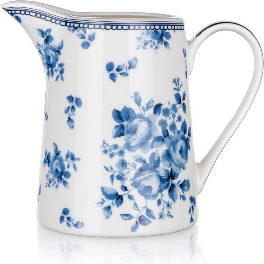 Ez a stílusos, minőségi kerámiából készült tejkiöntő eleganciát visz az asztalára. Az időtálló kék-fehér virágminta modern és hagyományos konyhában egyaránt szépen érvényesül, az ergonomikus fül és a praktikus kiöntőcsőr pedig kényelmes, pontos öntést tesz lehetővé.