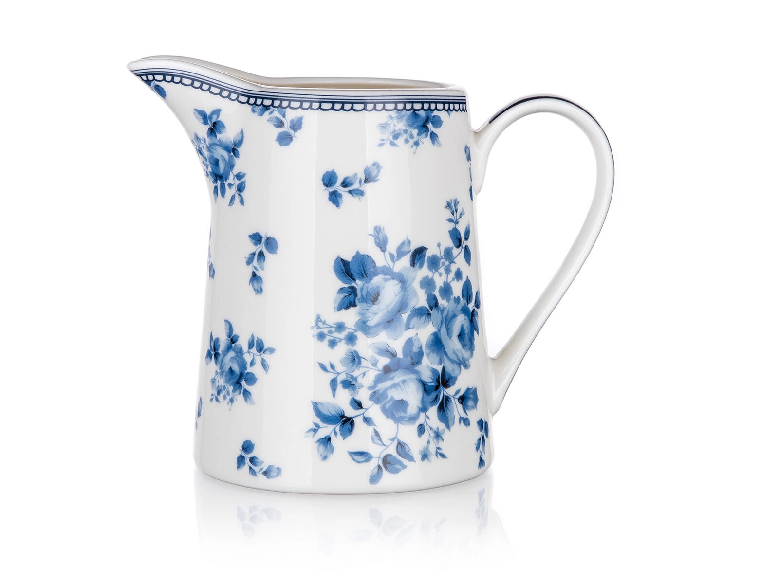 Elegáns kerámia tejkiöntő, a Blue Flower kollekcióból, 310 ml űrtartalommal, kék virágmintával díszítve. Ideális tej vagy tejszín felszolgálásához kávéhoz és teához. Mikrohullámú sütőben és mosogatógépben is használható, így a tisztítása egyszerű. Remekül kiegészíti az asztalterítést hétköznapi és ünnepi alkalmakon egyaránt, és más, azonos dekorú termékekkel kombinálva stílusos szervizkészletet alkot.