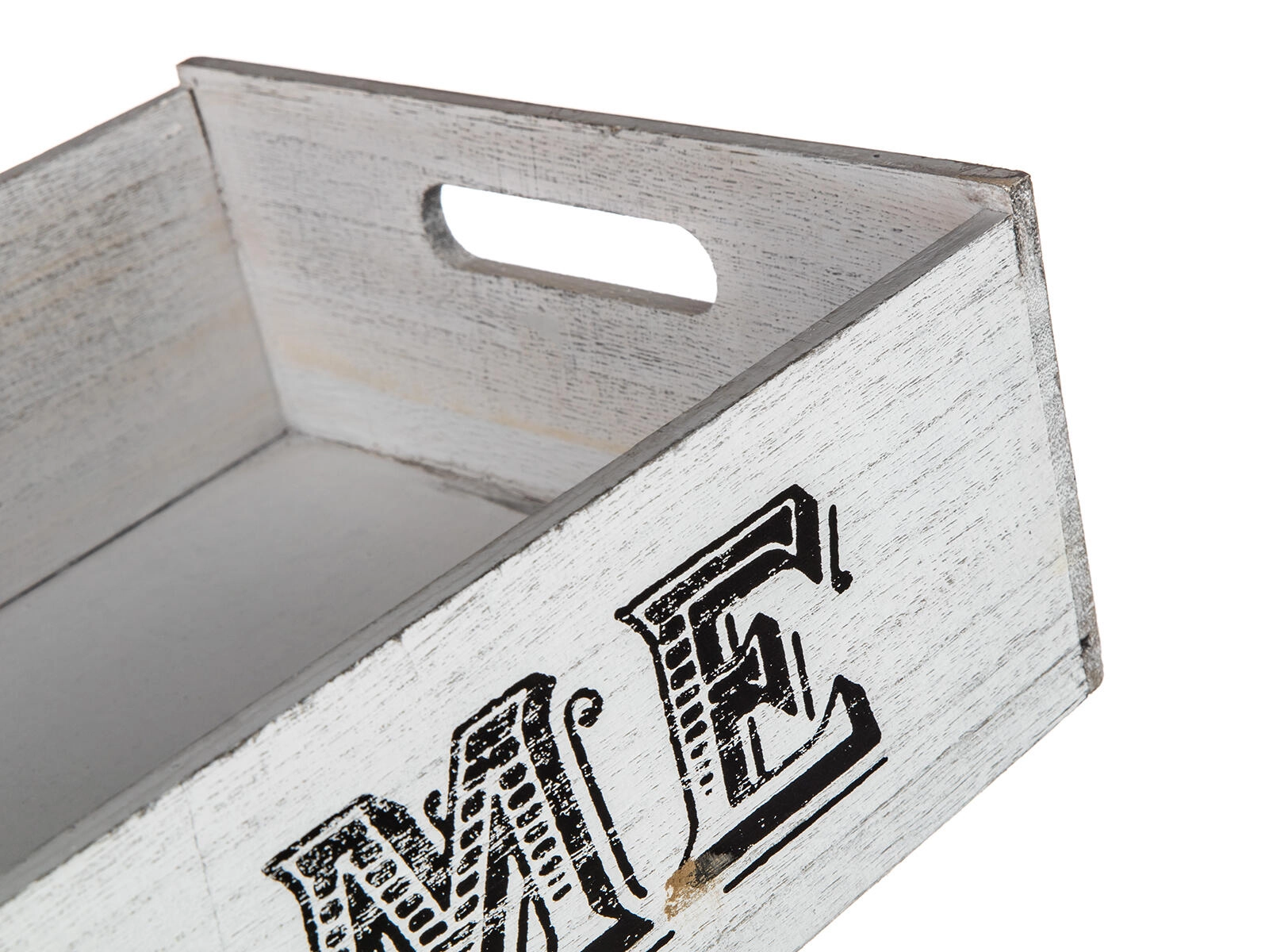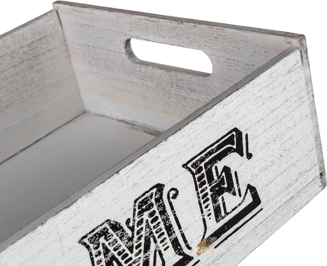 Stílusos, rusztikus kivitelű fa ládika HOME felirattal, amely remekül kiegészíti otthonod enteriőrjét. Praktikus oldalsó fogantyúkkal, masszív szerkezettel és elegendő hellyel a levelek, fényképek vagy fűszerek rendszerezéséhez.