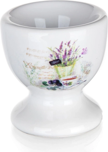 Élvezze a reggelit a bájos Lavender tojástartóval. A fehér máz és a levendula dekor friss, vidéki hangulatot visz a konyhába, és a mindennapi étkezést kis rituálévá varázsolja.