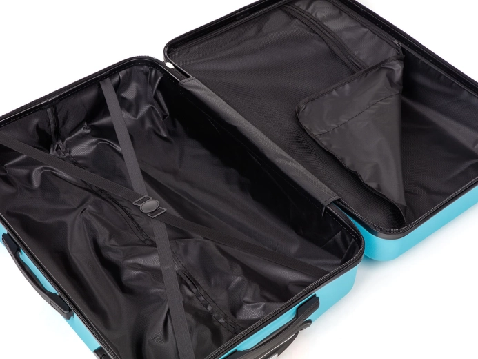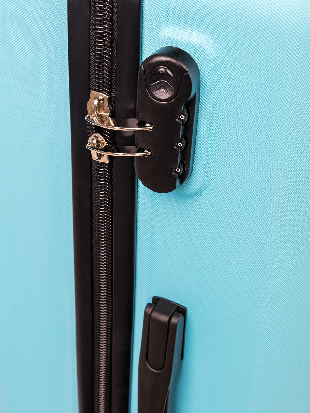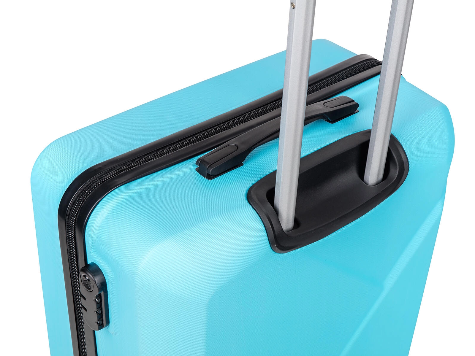 Könnyű és tartós ABS műanyagból készült utazóbőrönd elegáns világoskék színben, 86 l tágas űrtartalommal a kényelmes csomagoláshoz hosszabb utakra. A 4 db, 360°-ban forgó keréknek köszönhetően a bőrönddel bármilyen térben könnyű a manőverezés. A praktikus teleszkópos, rögzíthető húzókar, több fogantyú a kényelmes hordozáshoz és a számzár biztonságot és kényelmet nyújt az utazás során. Belül osztórekesz zsebbel és keresztpántok segítik az áttekinthető rendszerezést.