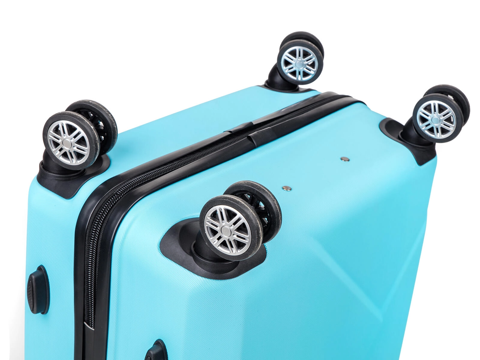 Utazó keményhéjú bőrönd 68 cm, világoskék, 360°-os kerekekkel és TSA számzárral