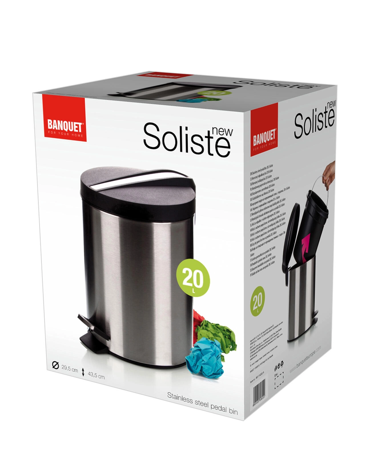 Az elegáns és funkcionális BANQUET Soliste New szemetes a letisztult dizájnt praktikus részletekkel ötvözi a mindennapi használathoz. A matt felületű rozsdamentes acél test tartós és könnyen tisztítható, míg a műanyag fedél csillapítja a záródás zaját és gátolja a szagok terjedését.