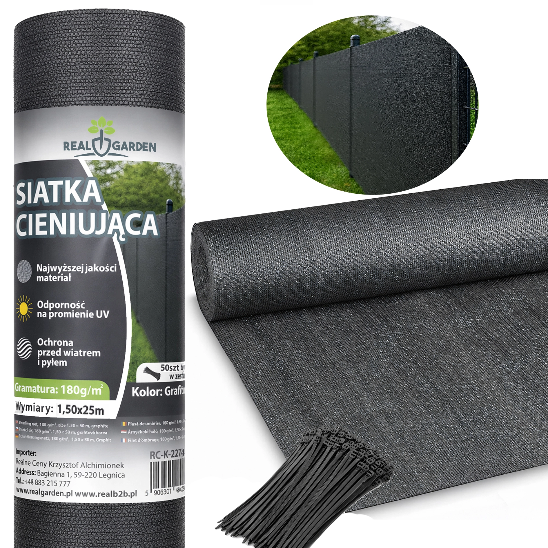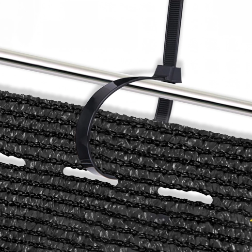 A szövet könnyen méretre igazítható, és a mellékelt 50 db kábelkötözővel rögzíthető. Ideális kerítéshálóra és korlátra is.
