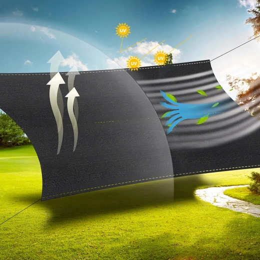 A háló akár 95% árnyékolást biztosít, növeli a magánszférát és csökkenti a huzatot a kertben, az erkélyen vagy a teraszon. Ideális kerítésekhez és pihenőzónákhoz.