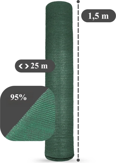 A 1,5 × 25 m méret hosszabb kerítésszakaszokat fed le fölösleges illesztések nélkül. A csomag része 50 db kábelkötöző, amelyekkel könnyen rögzítheti a hálót a dróthálóhoz vagy oszlopokhoz. A háló szélfogóként is használható teraszokon, teniszpályák mellett, illetve kertészetekben a növények védelmére.