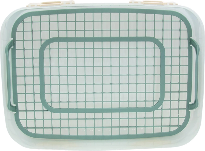 Tartozéka egy belső rács fülekkel, amellyel a kényes sütemények, szendvicsek vagy gyümölcsök könnyen kiemelhetők gyűrődés nélkül. A tartós műanyag kivitel egyszerűen tisztítható, a stócolható kialakítás pedig helyet takarít meg a hűtőben és szállításkor is.