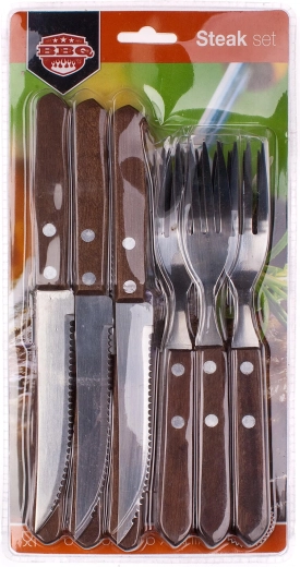 BBQ steak evőeszközkészlet 12 db rozsdamentes acél sötét fa nyéllel