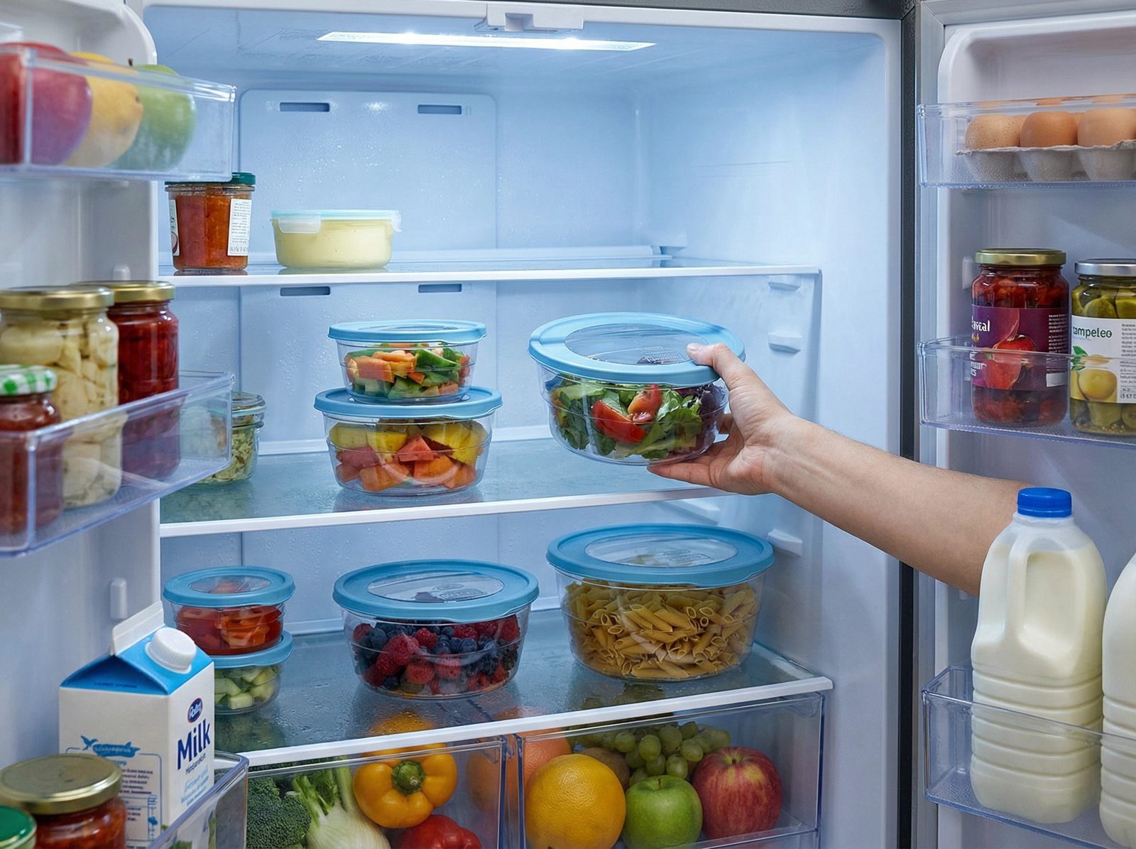 Minden dobozt a könnyű élelmiszer-rendszerezésre terveztek – a gyümölcsöktől és zöldségektől a tésztákig vagy szószokig. Az átlátszó edények lehetővé teszik a gyors tartalomellenőrzést, és segítenek megelőzni az élelmiszerpazarlást.