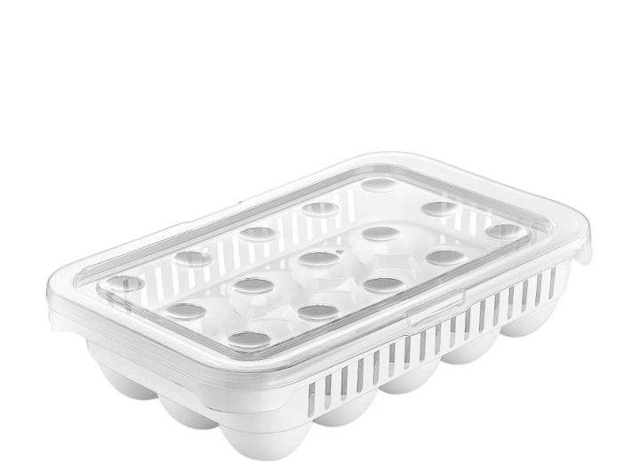Praktikus, téglalap alakú tojástartó, amely akár 15 tojást is befogad, és biztonságosan tárolja őket a hűtőszekrényben, illetve szállítás közben. Kiváló minőségű, élelmiszerrel érintkezésre alkalmas műanyagból készült, BPA-mentes és nem tartalmaz rákkeltő anyagokat. Újrahasznosított alapanyagokból készül, így kíméli a környezetet, és mosogatógépben mosható.