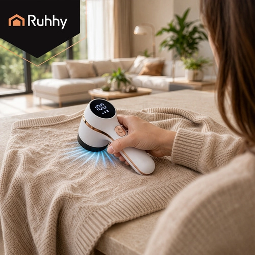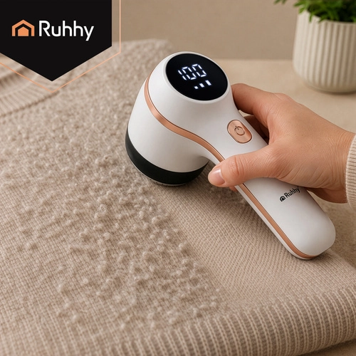 Vége a bolyhosodott pulóvereknek és kárpitoknak. A RUHHY vezeték nélküli szöszeltávolító gyorsan és kíméletesen távolítja el a szöszt, szőrszálakat és kibomlott szálakat a ruházatról és textíliákról. 6 rozsdamentes acél penge a nagy hatékonyságért, 3 teljesítményszint különböző anyagokhoz, áttekinthető LCD kijelző és kényelmes USB‑C töltés. A nagy, 50 mm‑es rácsnak köszönhetően nagyobb felületek is gyorsan és erőfeszítés nélkül tisztíthatók.