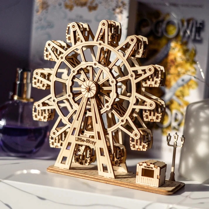 Fedezze fel az alkotás örömét a Little Story 3D modelljével – precízen kivágott fa kirakóval, amely ragasztó nélkül is izgalmas kihívást nyújt. Az elemek előre kivágottak és számozottak, így az építés gördülékeny és áttekinthető. A minőségi anyagok szilárdságot, biztonságot és szép megjelenést biztosítanak, a kész óriáskerék modell pedig stílusos lakásdekoráció lesz.