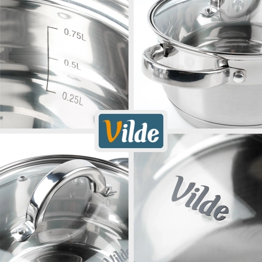 Praktikus edény minőségi rozsdamentes acélból üvegfedővel, kiváló választás a mindennapi kisebb adagok főzéséhez – tojásokhoz, mártásokhoz, kásákhoz, levesmelegítéshez, valamint vaj és csokoládé olvasztásához. A selyemfényű kivitel elegáns megjelenést ad, míg a „Maximum Power” akutermikus alj gyorsan és egyenletesen melegszik, így energiát takarít meg.