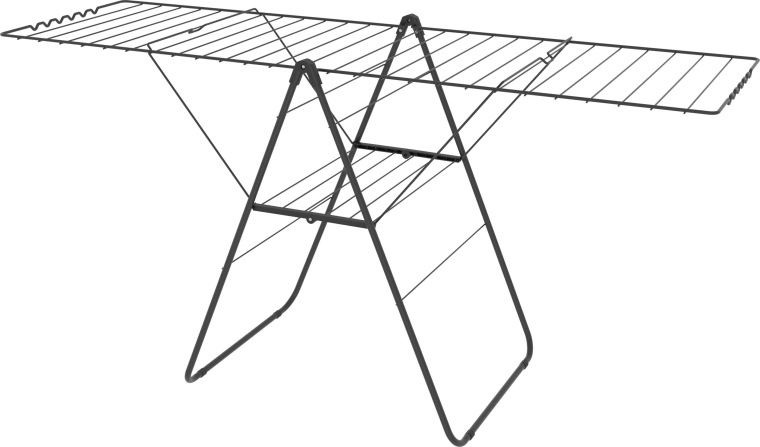 Praktikus, összecsukható ruhaszárító akár 25 m szárítófelülettel, ideális mindennapi szárításhoz otthon és az erkélyen. Stabil szerkezet, kihajtható szárnyak és kompakt méret összehajtva a könnyű kezelhetőségért és helytakarékosságért. Az elegáns fekete kivitel jól illik a modern otthonokba.