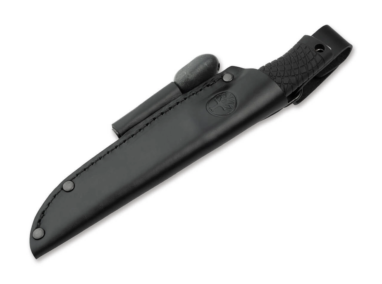 - Bőrtok tűzgyújtóval a biztonságos hordáshoz és a könnyű tűzgyújtáshoz.
