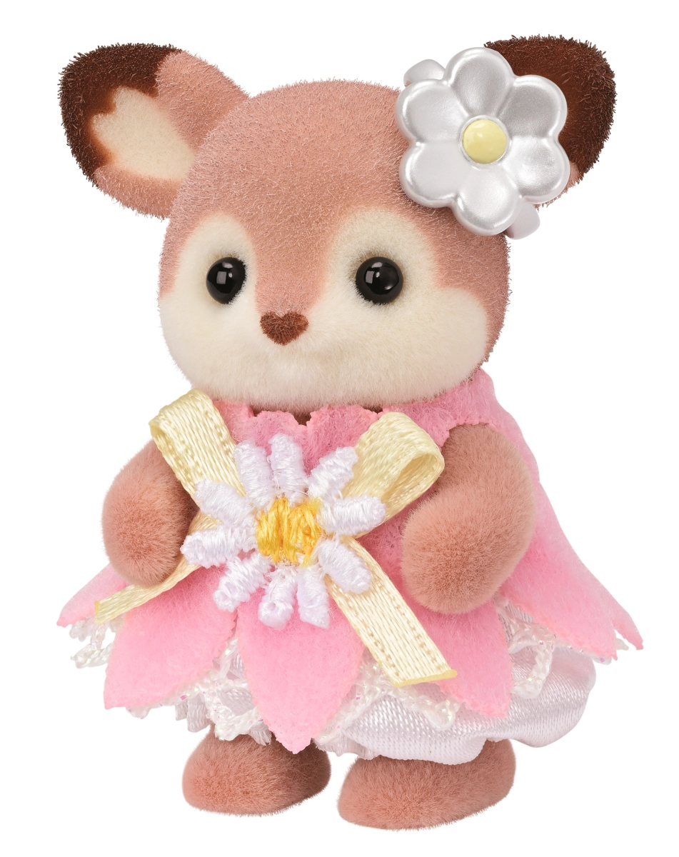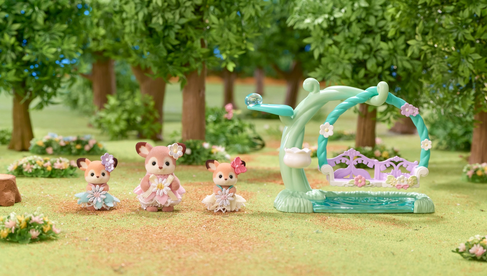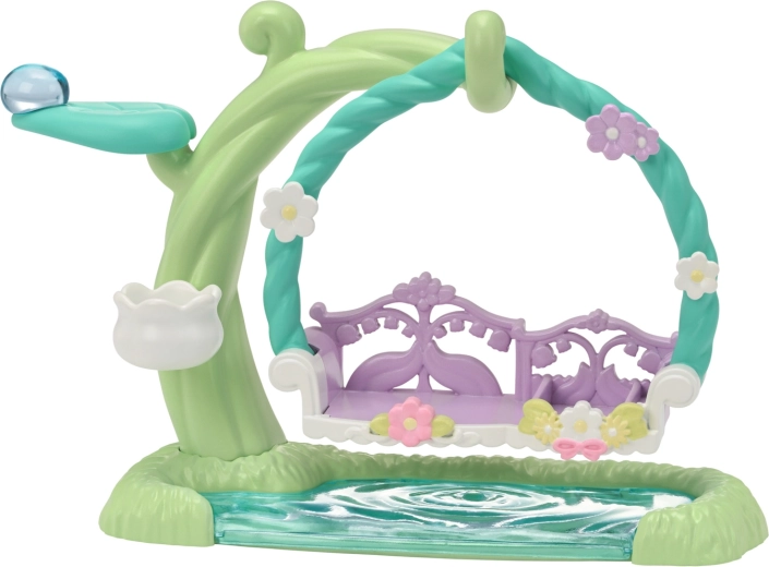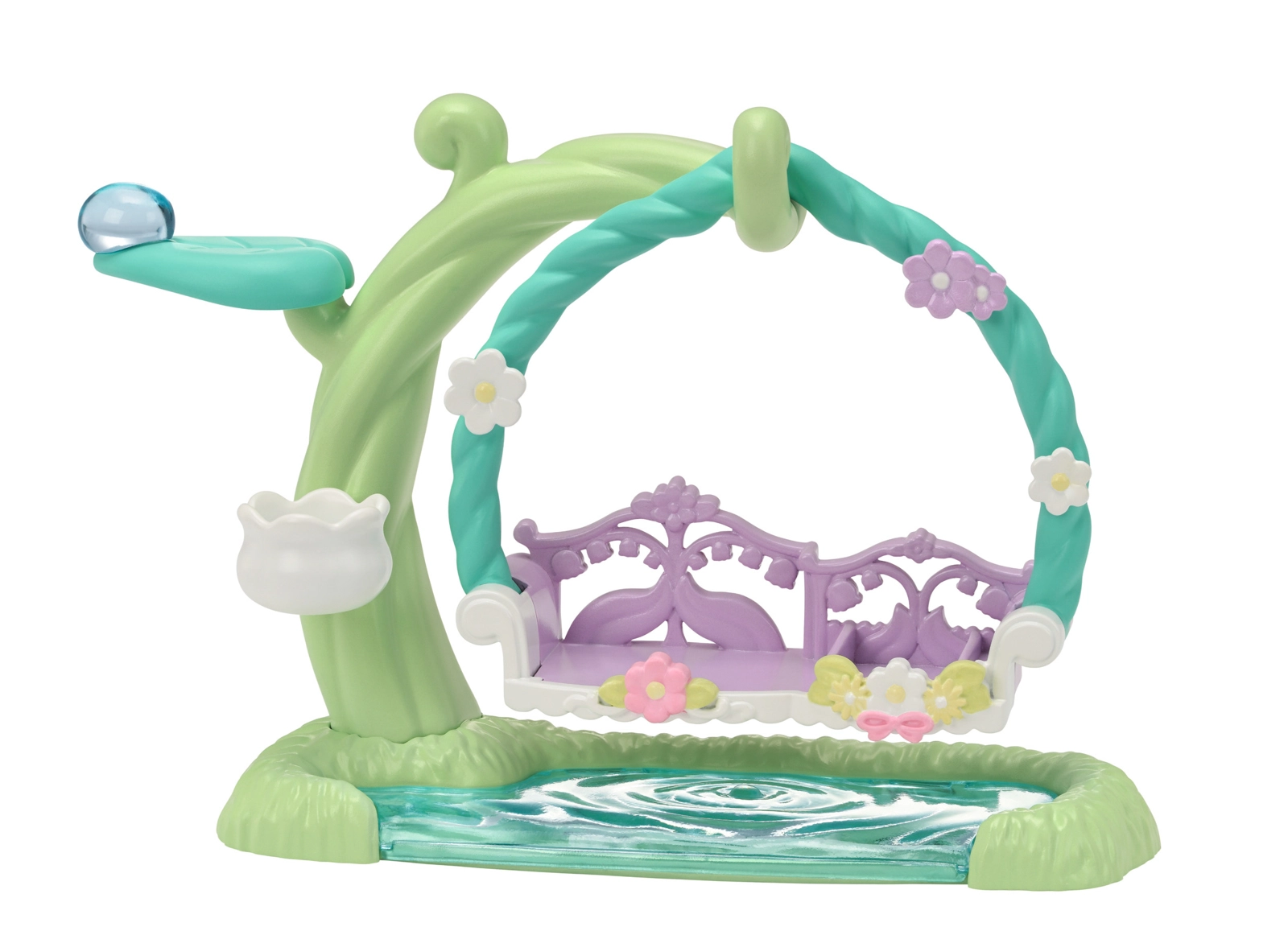 A figurák selymesen puha felületűek, részletgazdag öltözékben vannak, és mozgatható részeiknek köszönhetően könnyen pózolhatók. A szett része egy dekoratív fa függő paddal-hintával, valamint virágos kiegészítők. Ideális önálló játékhoz vagy a Sylvanian falu bővítéséhez.