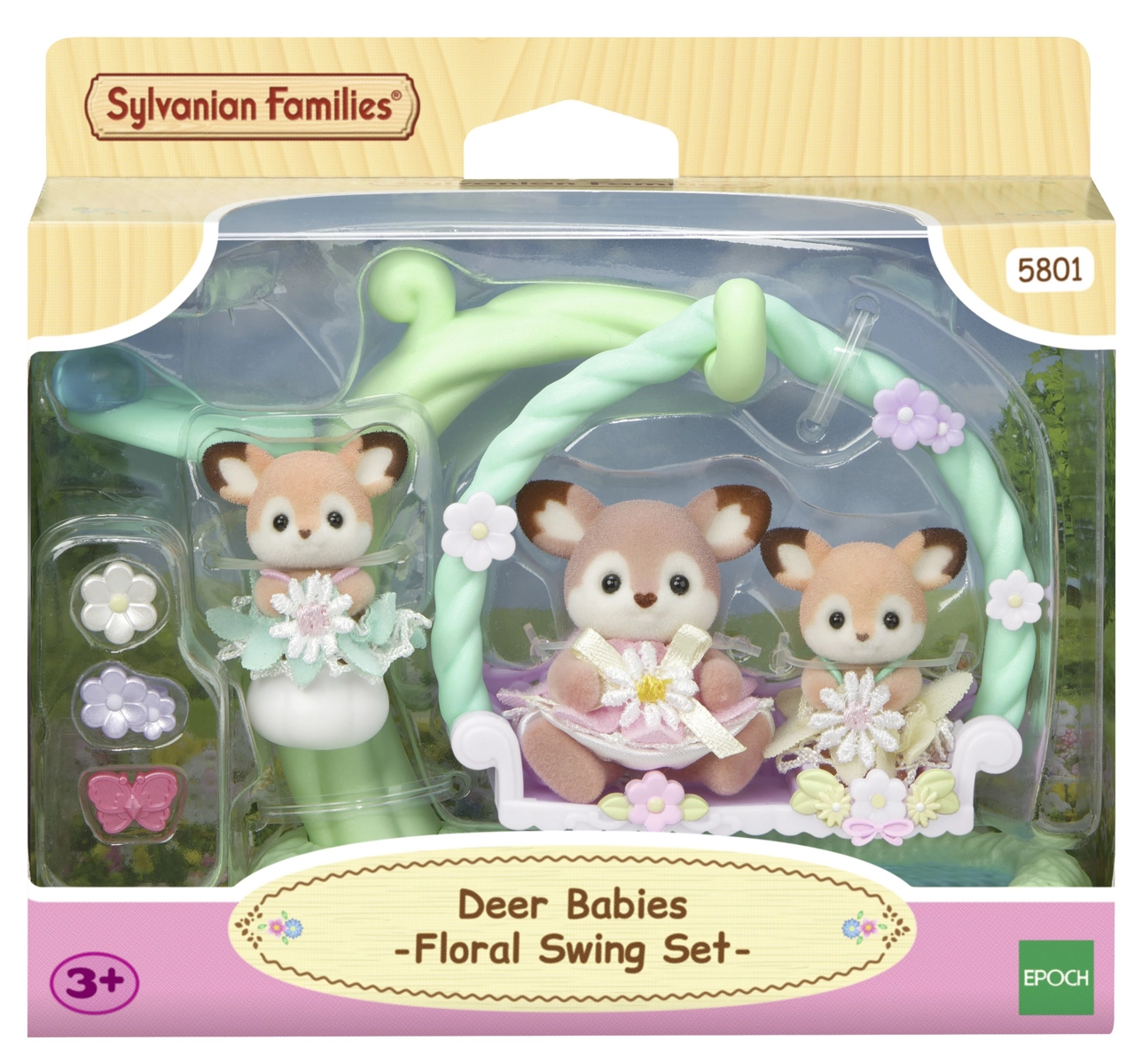 Sylvanian Families őzikék a virágos hintán – játékszett 3 figurával