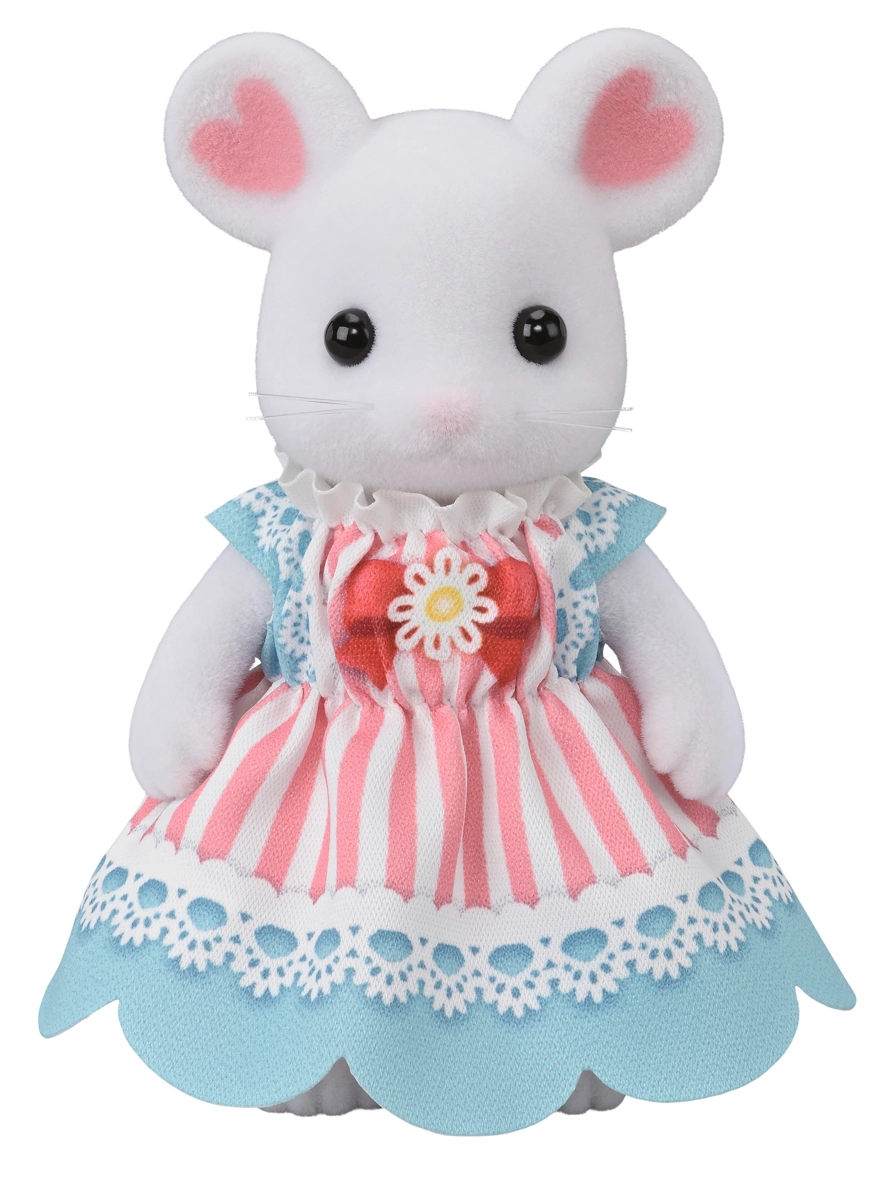 A Marshmallow egércsalád figurája puha, bársonyos felületű, mozgatható végtagokkal és fejjel. A ruha könnyen levehető és más szettekkel kombinálható.