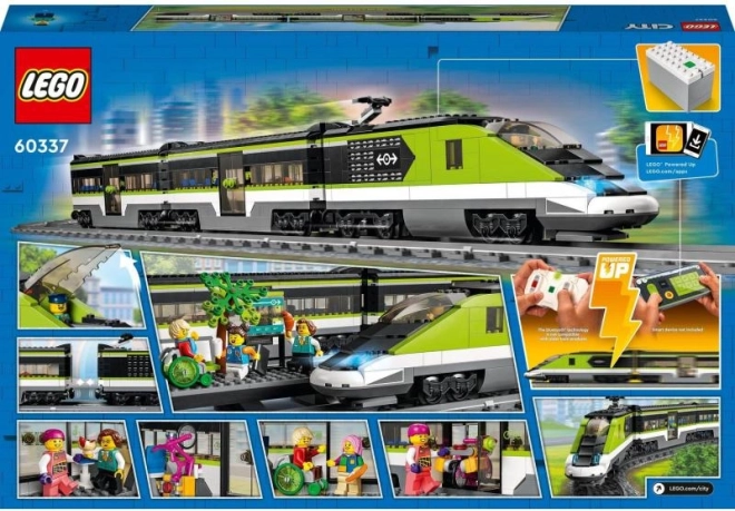 Építsd meg a saját vasútvonaladat a LEGO CITY nagysebességű vonattal 60337. Szerezz be távirányítással vezérelhető mozdonyt állítható fényerejű fényszórókkal (Powered Up), egy büfékocsit és személyszállító kocsit, peront, 24 sín elemet és 6 minifigurát a végtelen történetekhez és kreatív játékhoz.