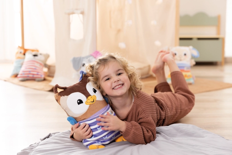 Fedezze fel a zökkenőmentes átmenet varázsát játék és pihenés között. Ez a Cosidoos plüss bagolyka segít a gyerekeknek megérteni a nappal és éjszaka ritmusát – napközben fantáziára és felfedezésre hív, estére pedig ölelni való párnává alakul szelíd éjszakai motívummal a nyugodt alváshoz.