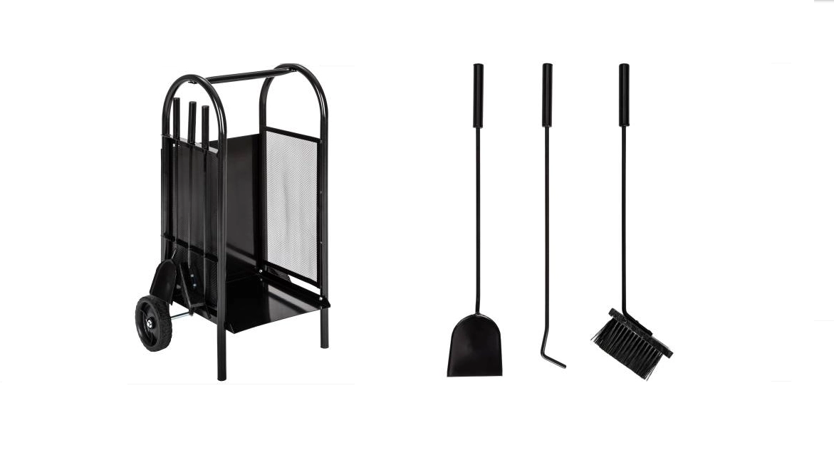 Praktikus kandalló szett integrált hasábfával tölthető tárolóval a kandalló körüli rendre és az elegáns megjelenésért. Tartalmaz lapátot, piszkavasat és kefét, tartós 1,0 mm vastag fémből készült, és stabil szerkezetével valamint fekete színével tűnik ki.