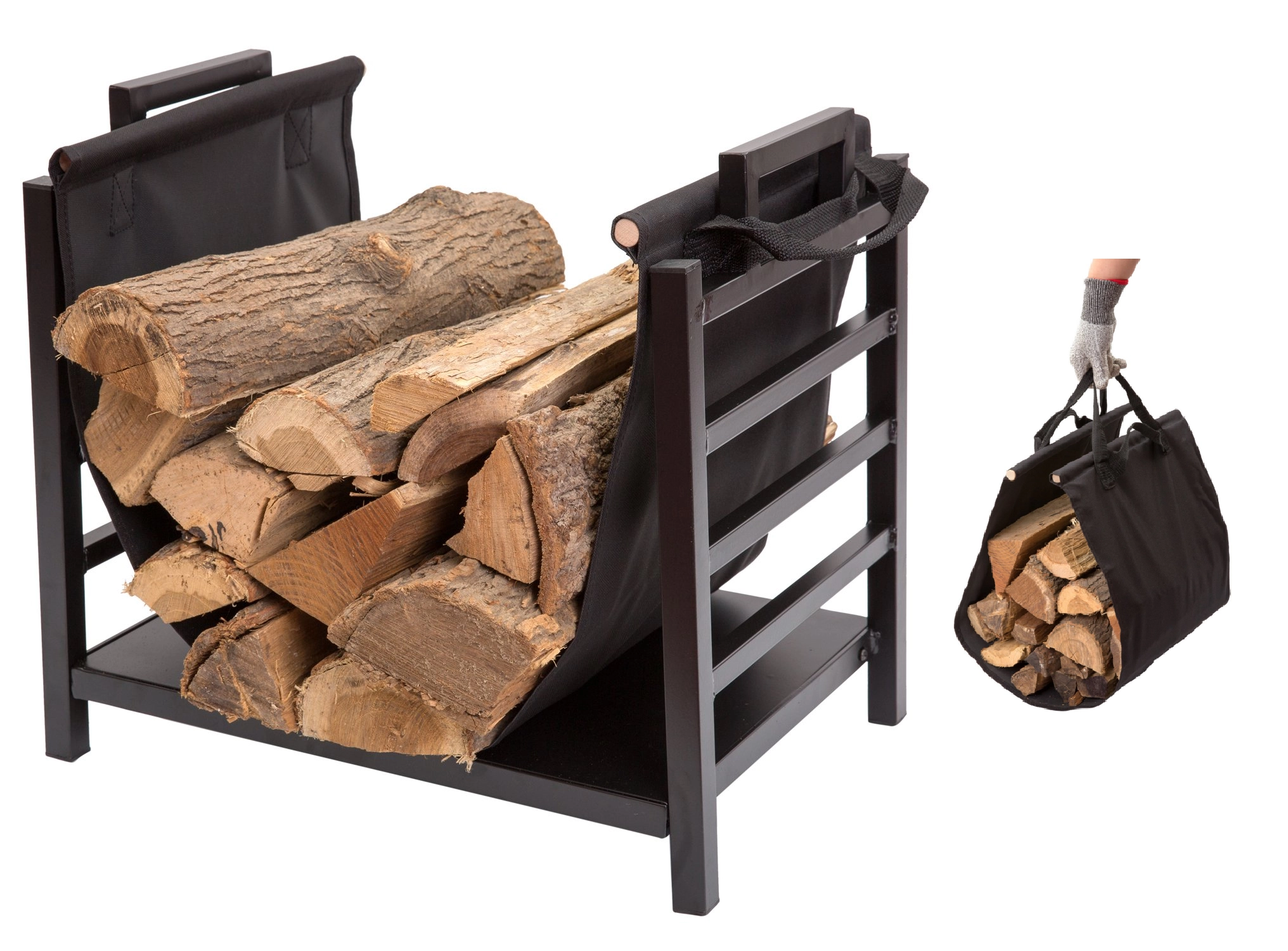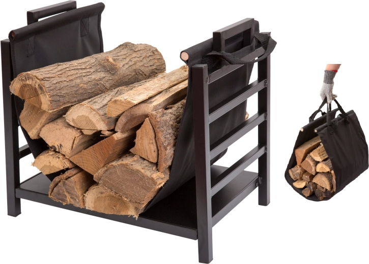 Az integrált fogantyú és a betét megóvja a padlót a szálkáktól és portól. A fa rendezett marad, és mindig kéznél van a kandallónál.