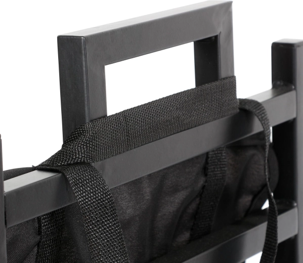 Az integrált fogantyúknak és az átgondolt formának köszönhetően a tartó könnyen mozgatható, és jól mutat modern és hagyományos terekben egyaránt. A fekete szín időtálló, könnyen tisztítható, és harmonizál a kandallóeszközökkel és dekorációkkal.