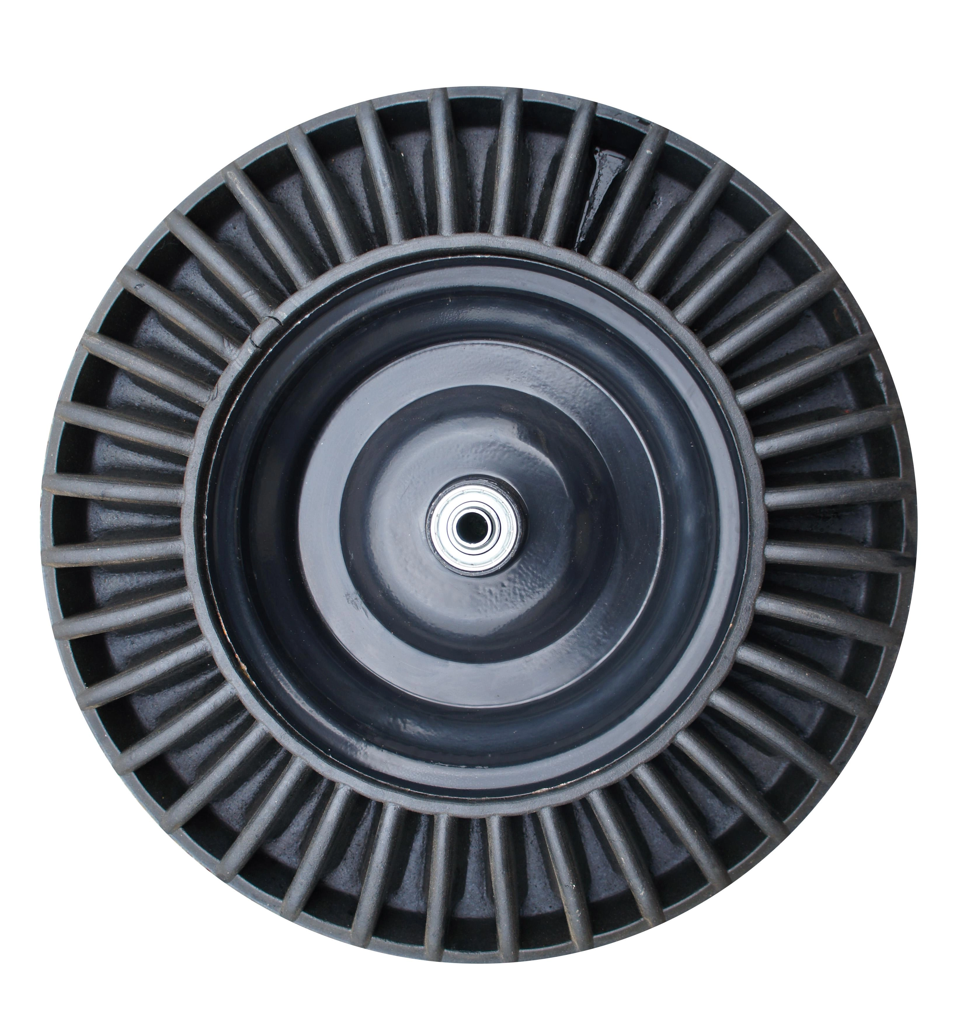 Ellenálló pótkerék csapággyal és tömör (belső nélküli) gumival, 390 mm átmérővel építőipari talicskához. A lemezfelni magas szilárdságot biztosít, a tömörgumi pedig karbantartásmentes, defektmentes üzemet és hosszú élettartamot még a nehéz építési körülmények között is.