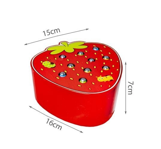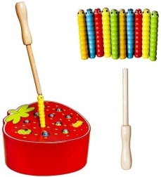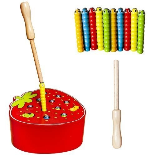 Fogd meg a kukacot! Ez a bájos, eper alakú fa játék hosszan lefoglalja a gyerekeket. A mágneses pálcával kihúzzák a kukacokat a nyílásokból, majd visszahelyezik őket, miközben gyakorolják a finommotorikát, a pontosságot és a koncentrációt. A fa természetes tulajdonságait tartós kivitelezés és biztonságos, sima élek egészítik ki.