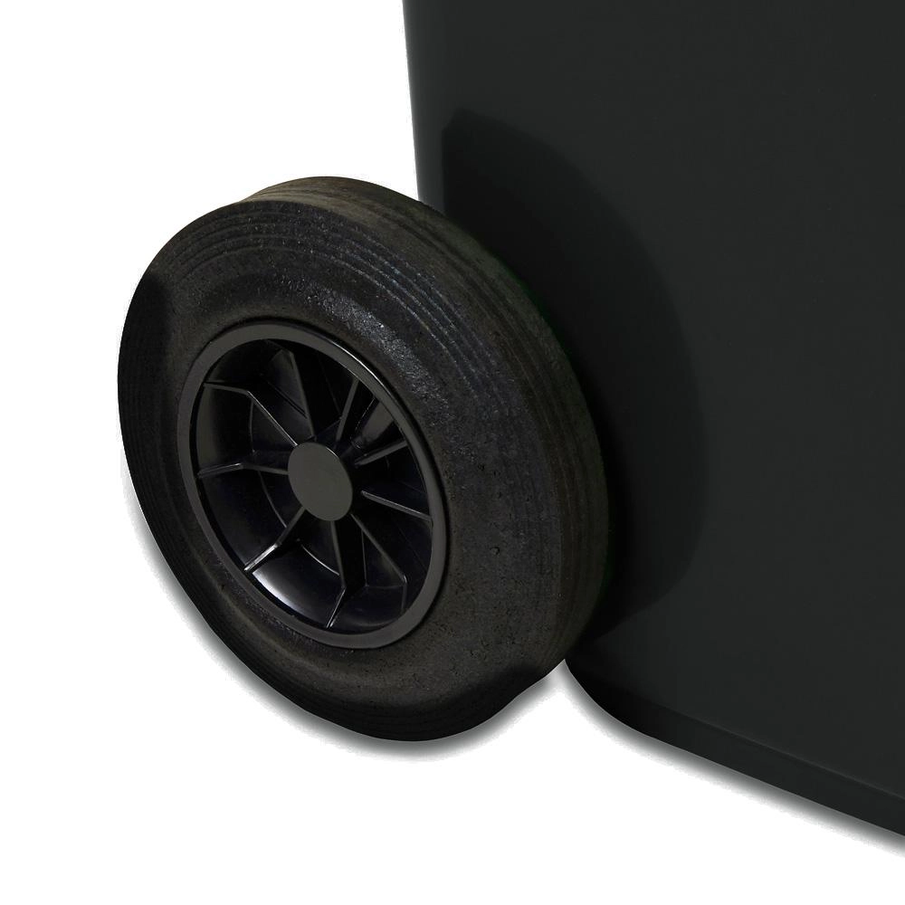 Ez a fekete, 120 literes műanyag kuka ideális választás háztartások, cégek és üzemek számára. Alacsony tömegének, ergonomikus oldalsó fogantyúinak és a két masszív keréknek köszönhetően a tartály még teljes terhelésnél is könnyen mozgatható. A masszív fedél segít csökkenteni a szagokat, és megakadályozza a kártevők bejutását.