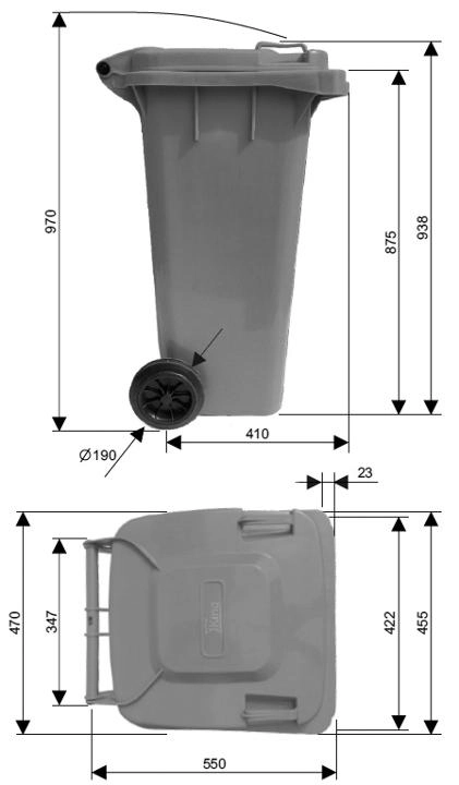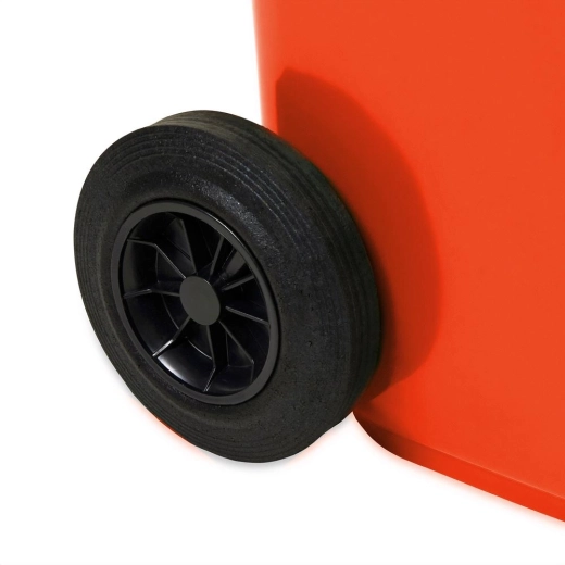 Két robusztus kerék biztosítja a gördülékeny mozgatást a járdára, egyenetlen terepen is. A kuka alacsony tömege kíméli az erőt a mindennapi használat során.