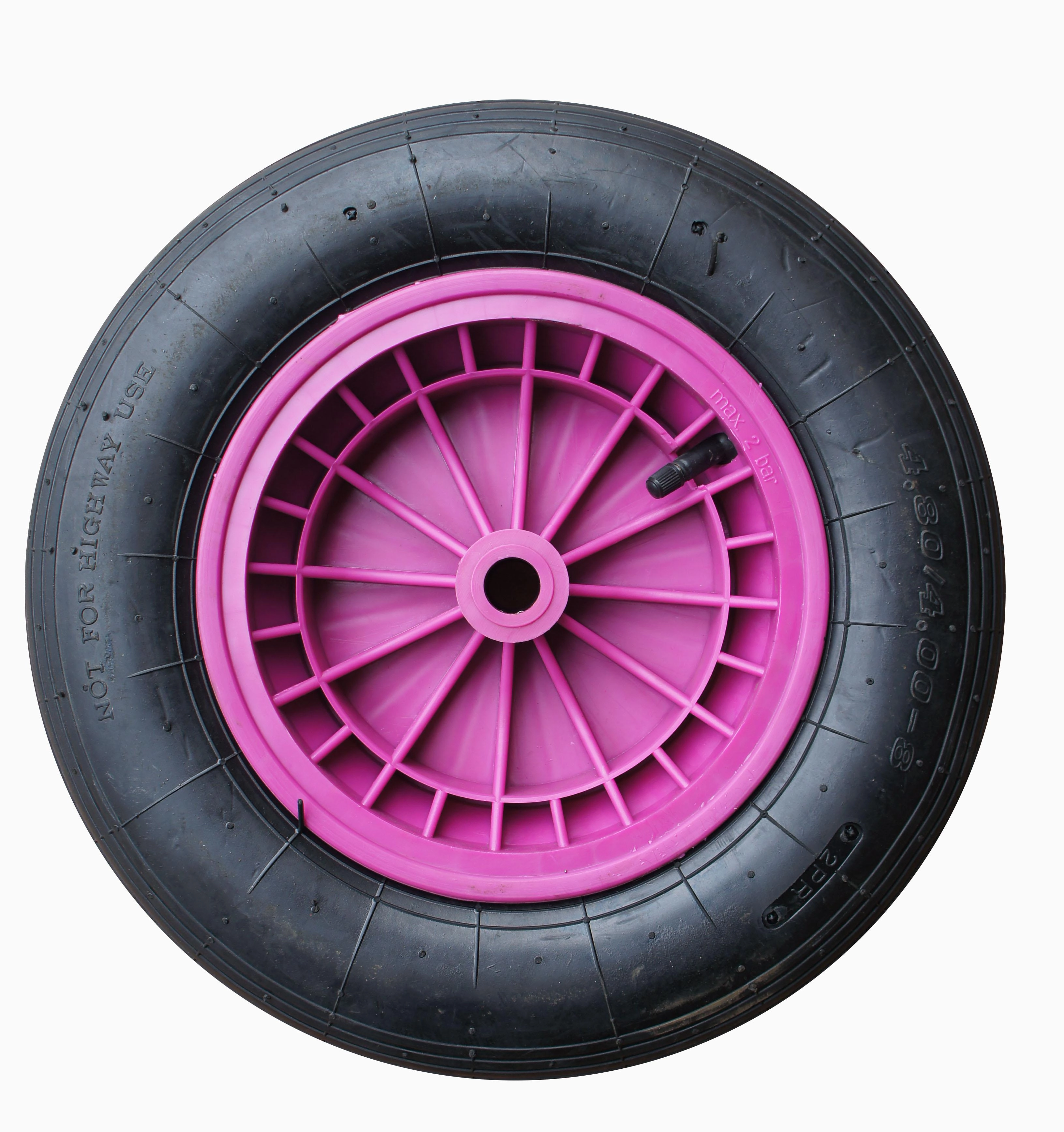 Univerzális LIVEX felfújható kerék lila színben, 390 mm átmérővel és 90 mm abroncsszélességgel, ideális cserealkatrész a LIVEX 24218 talicskához. Kényelmes haladást, jó egyenetlenség-elnyelést és megbízható stabilitást biztosít a rakomány szállításakor.