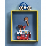 A Vilac kék kisautó lakkozott fából készült, ami tartósságot és elegáns megjelenést biztosít. Fémből készült, gumírozott kerekek biztosítják a sima és csendes gurulást. Egyedi tengelymegoldásának köszönhetően az autó képes balra és jobbra kanyarodni, ami dinamikát kölcsönöz a játéknak.