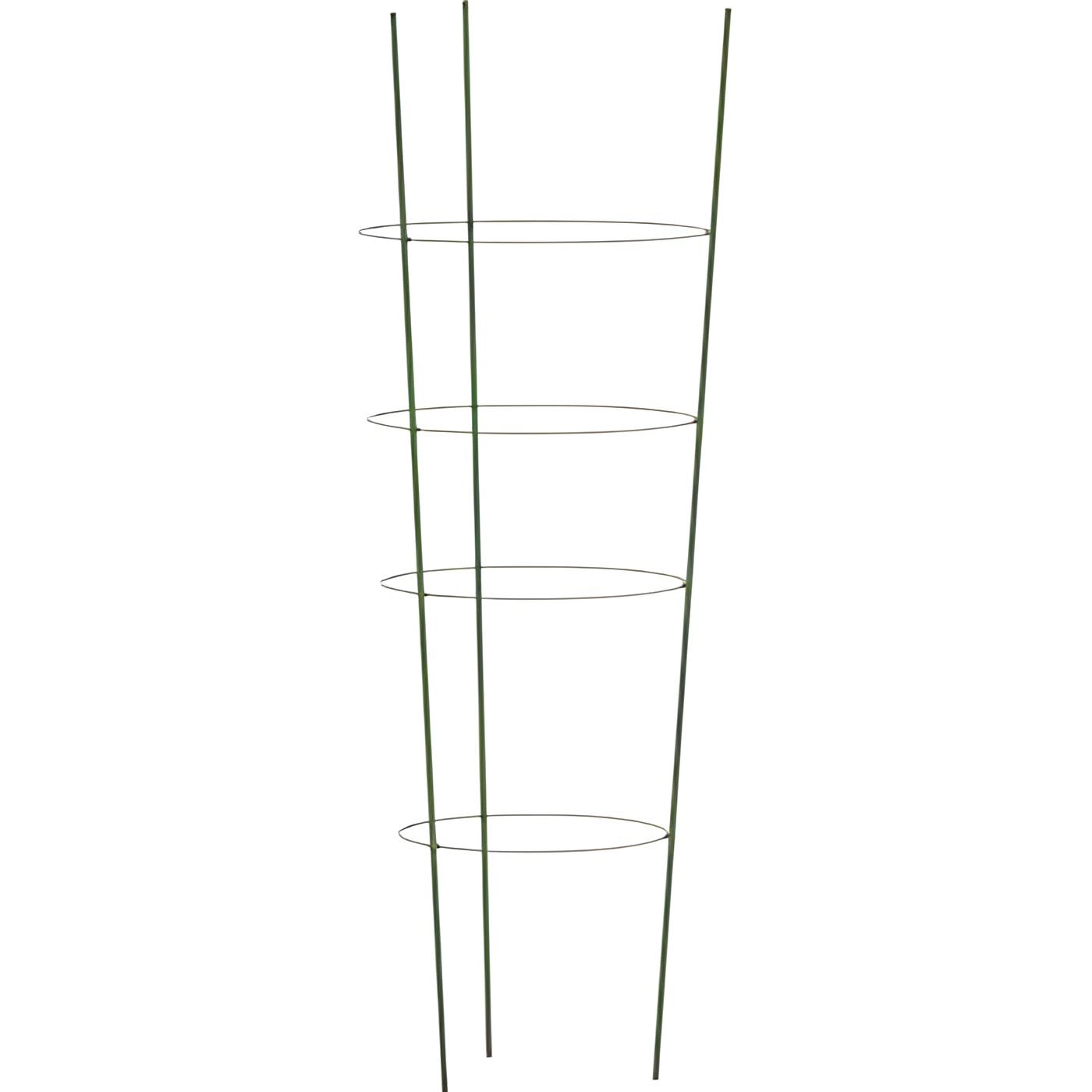 Tartsa növényeit szépen formáltan és biztonságosan megtámasztva. A 90 cm magas, különböző átmérőjű négy gyűrűvel ellátott kör alakú támasz a teljes vegetációs időszak alatt stabilitást nyújt. Zöld színe beleolvad az ágyásba vagy a virágcserépbe, így a támasz nem vonja feleslegesen magára a figyelmet.