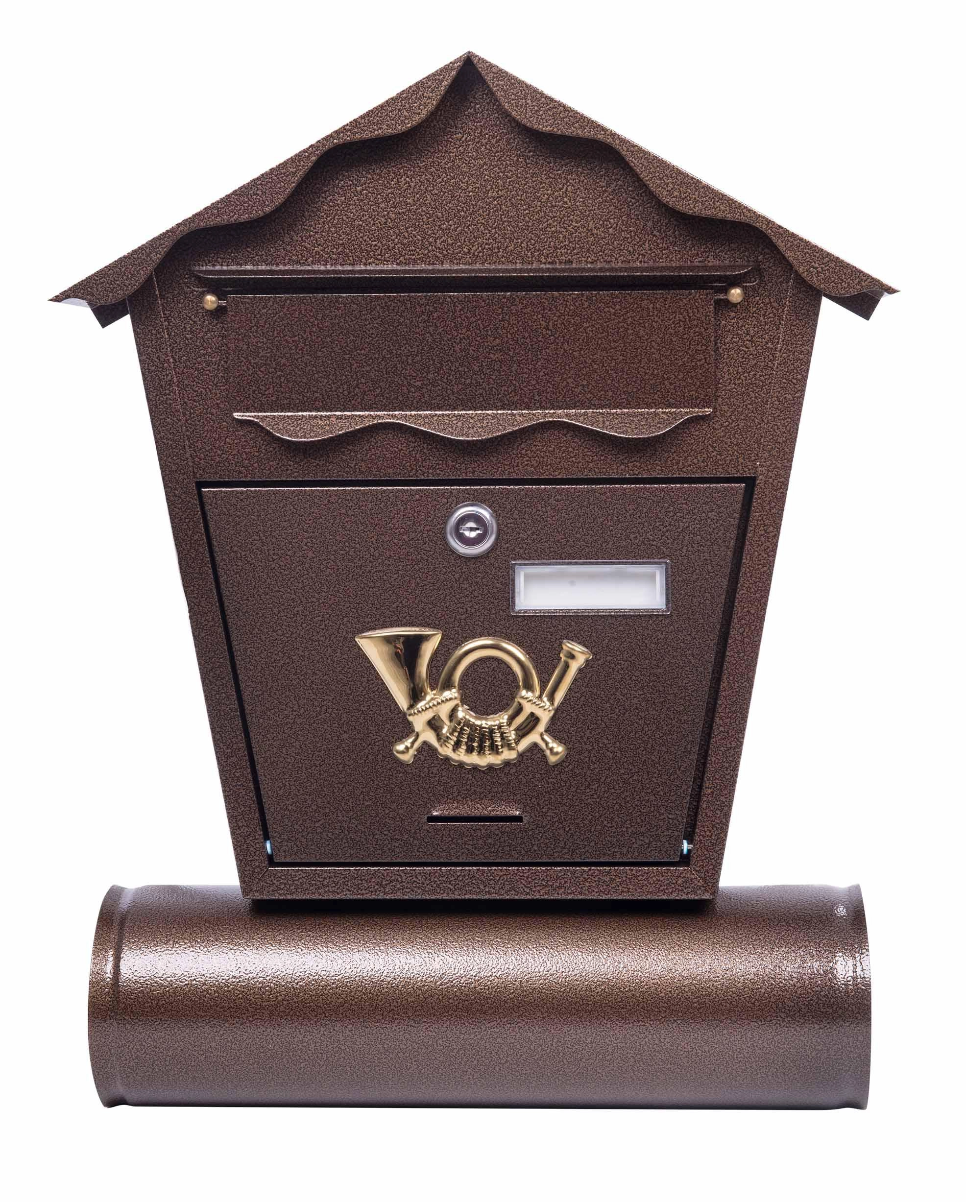Ez a hagyományos acél postaláda elegáns bronz színben remekül illik különböző építészeti stílusokhoz. A hegyes tető megóvja a bedobónyílást az esőtől, míg a különálló henger a nyomtatványoknak a fő postától elkülönítve tartja az újságokat és magazinokat. A négy rögzítési pontnak köszönhetően a szerelés stabil és biztonságos.