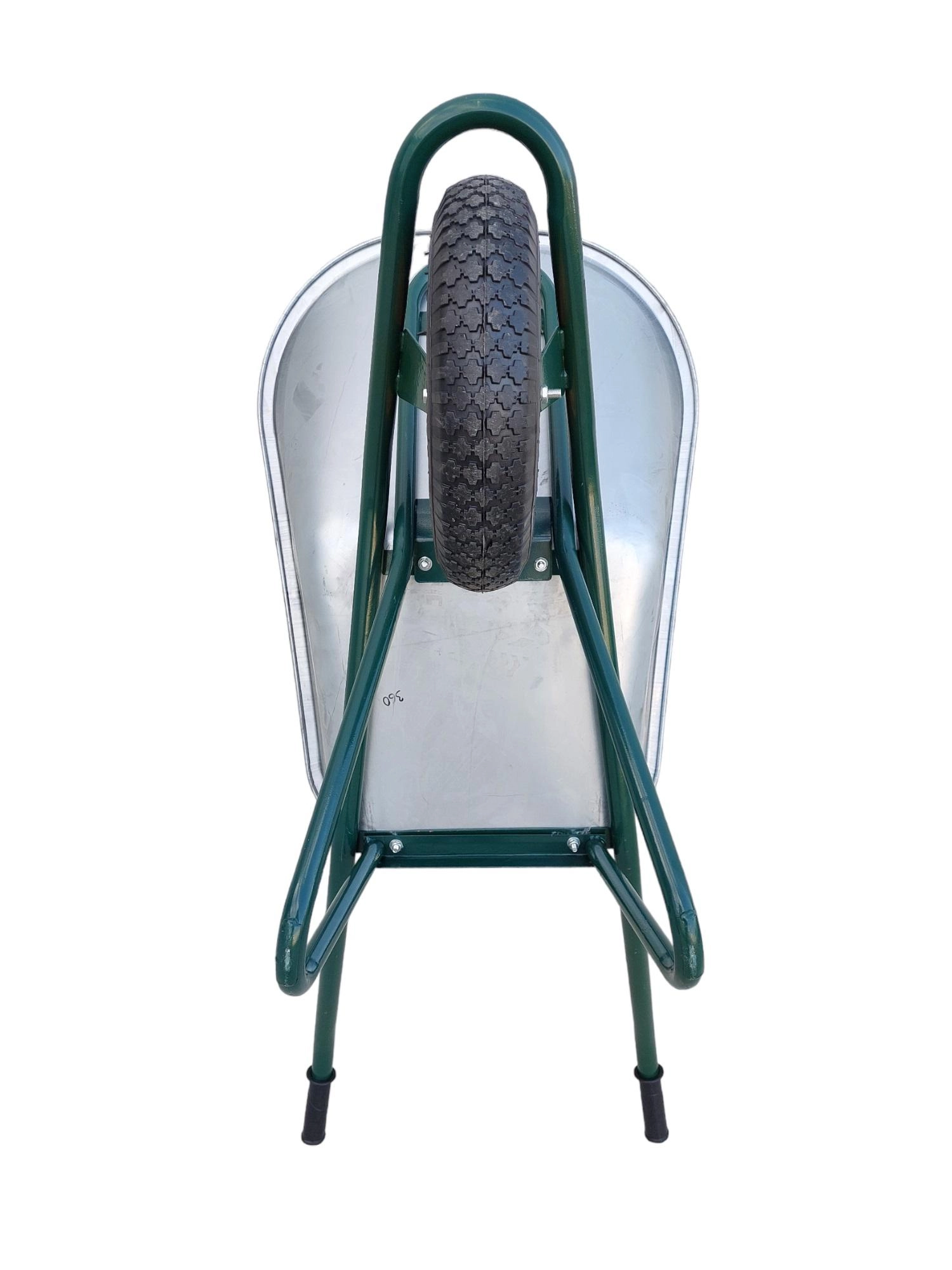 100 kg teherbírásának köszönhetően ideális föld, mulcs, lomb, kavics vagy kerti szerszámok szállítására. A masszív váz támogatást nyújt rakodáskor és ürítéskor, míg az ergonomikus fogantyúk biztos fogást adnak. A szétszerelhető konstrukció megkönnyíti a tárolást és a szállítást.
