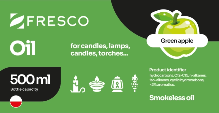 Kiváló minőségű, alma illatú lámpaolaj lámpákhoz, fáklyákhoz és gyertyákhoz. Fényes, egyenletes lánggal ég, és füstmentes (helyesen beállított kanóc esetén). Beltéri és kültéri használatra egyaránt alkalmas, és gyermekzáras kupakkal ellátott palackban kerül forgalomba a véletlen kinyitás ellen.