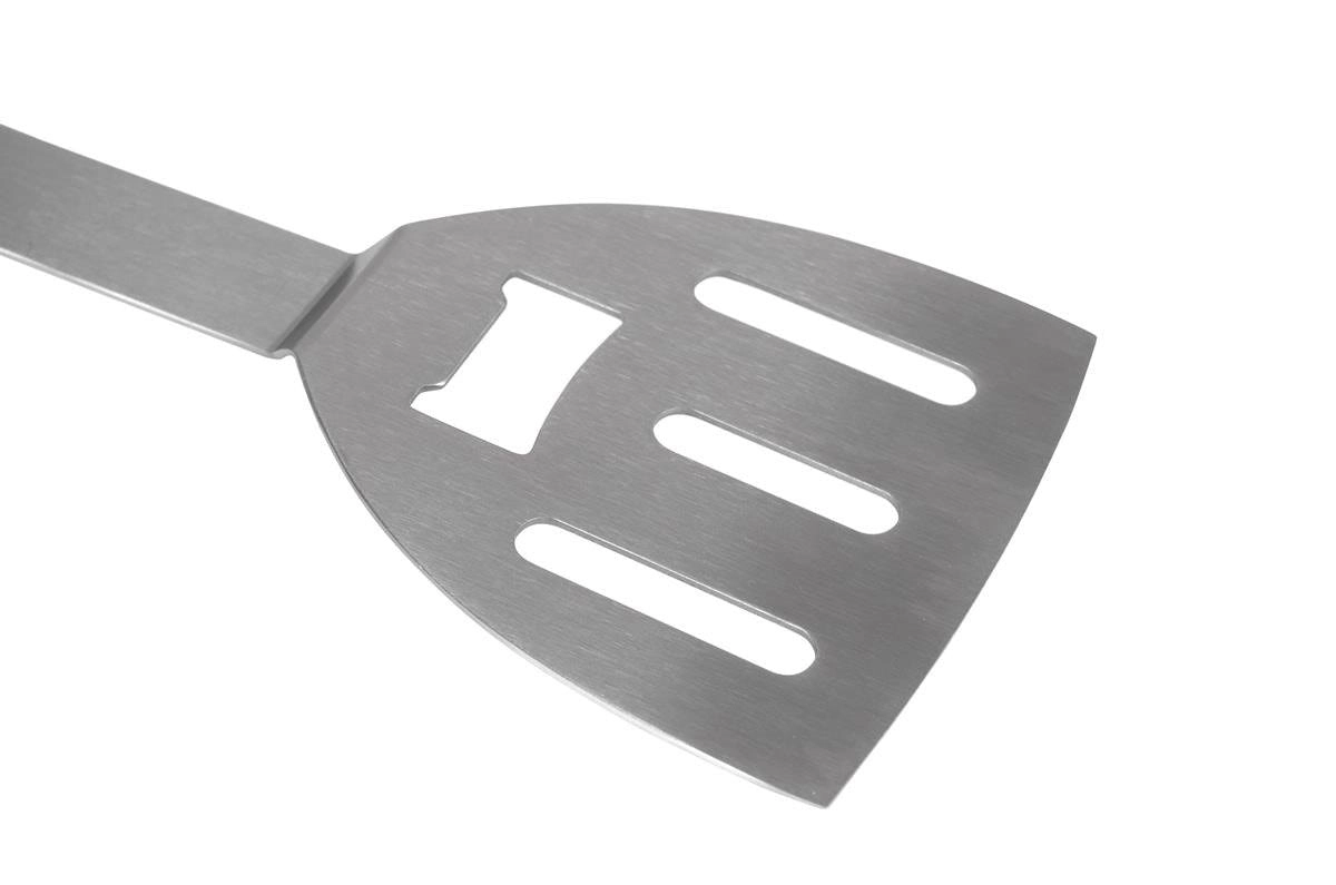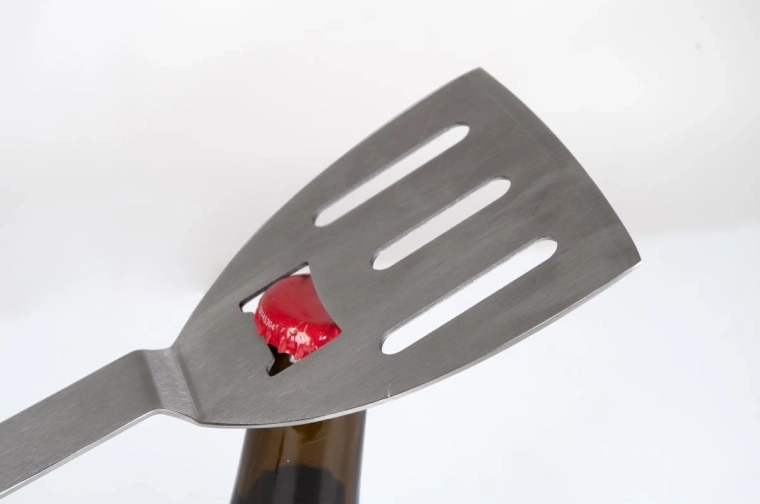 • 5 funkció egyben: réselt lapát üvegnyitóval, grillvilla, szilikon kenőecset, dugóhúzó.
