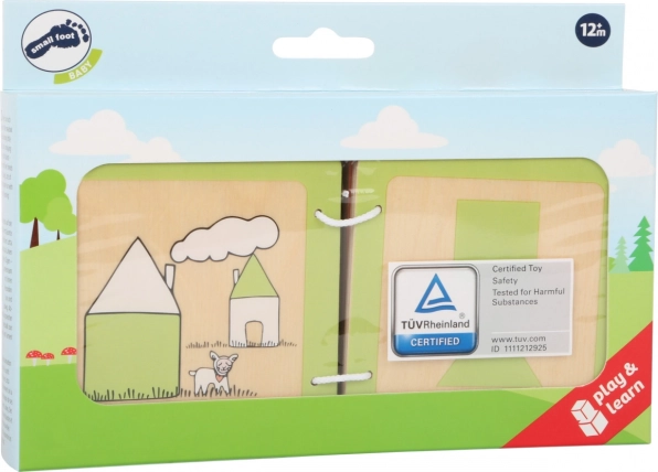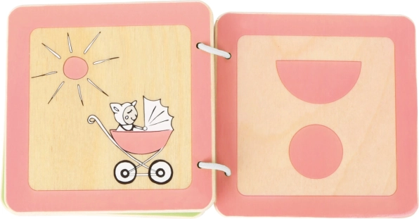 A LOTTA fa könyvecske kifejezetten 12 hónapos kortól ajánlott kisgyermekek számára. Játékos módon segít megismerni az alapvető formákat, és fejleszti a vizuális és tapintási észlelést. A tartós fa oldalak erős gyűrűs kötése bírja a mindennapi használatot, és könnyen tisztán tartható.