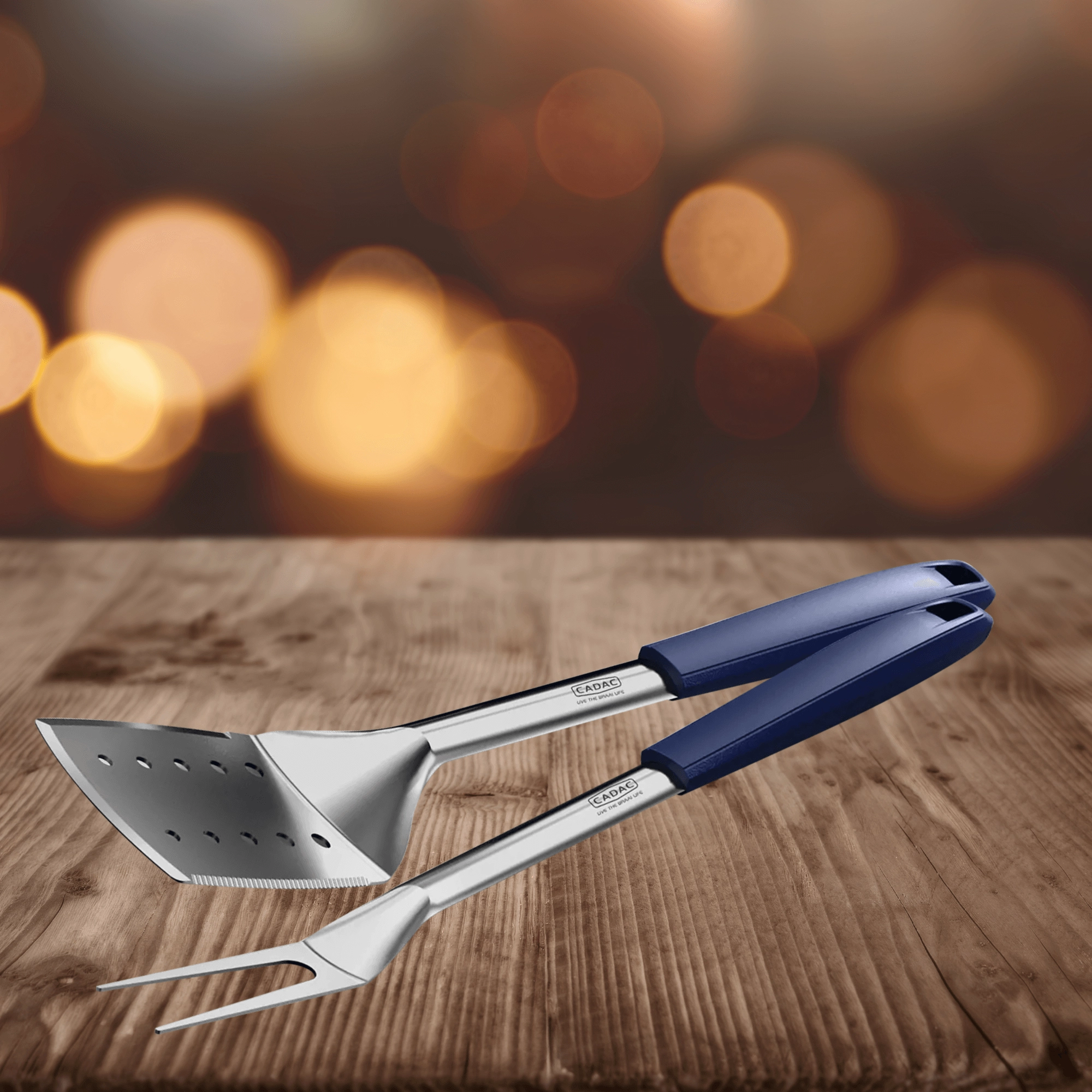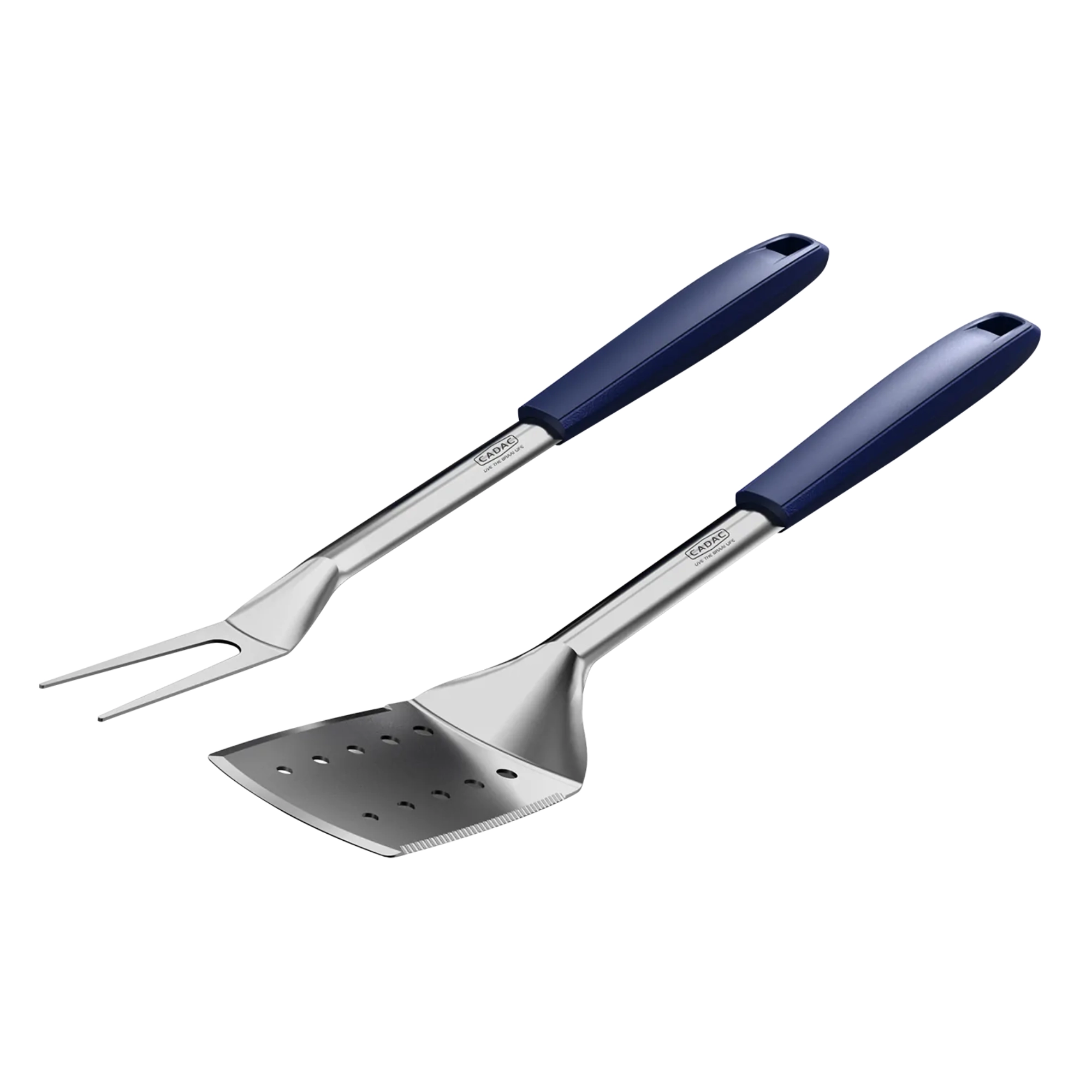 A CADAC professzionális grillszettje egy masszív rozsdamentes lapátot és egy villát tartalmaz hosszú, ergonomikus nyelekkel. A mágneseknek a nyelekben köszönhetően könnyen rögzíthetők a legtöbb fémfelületre, az integrált támaszok pedig a szerszám fejét az asztal fölött tartják a jobb higiénia érdekében. A tartós anyagok magas hőmérsékletet is bírnak, és kényelmes, biztonságos használatot nyújtanak a grillnél és a konyhában is.