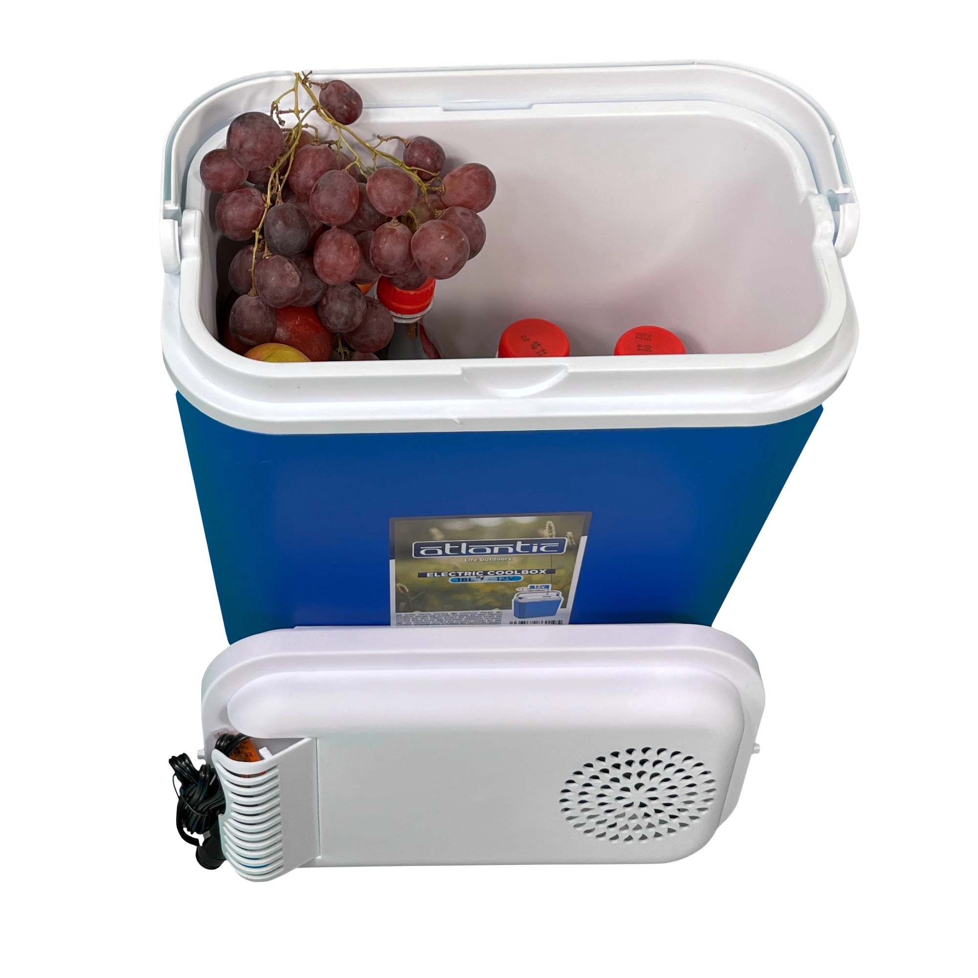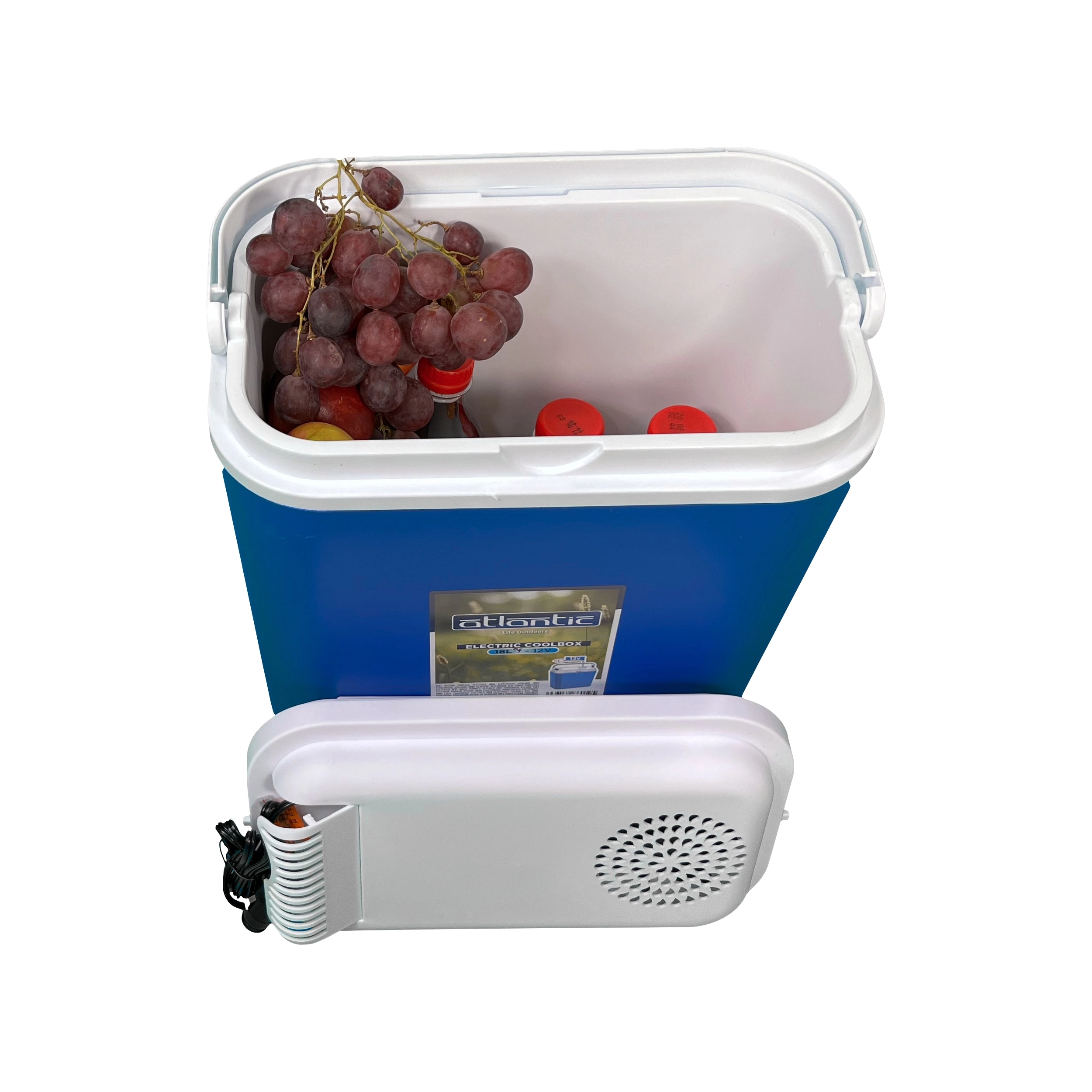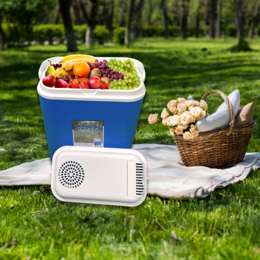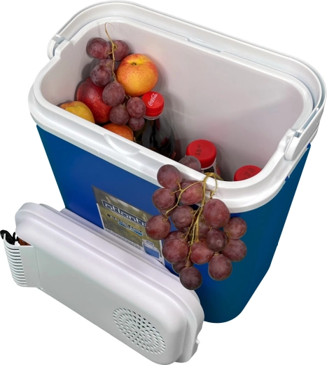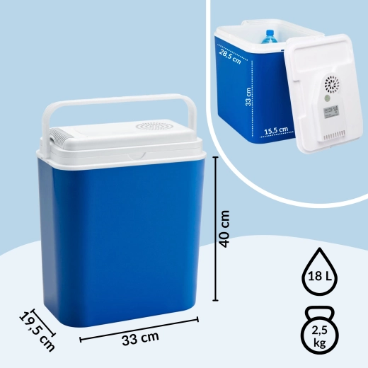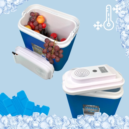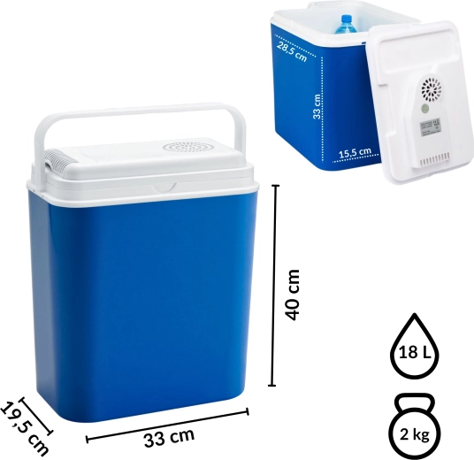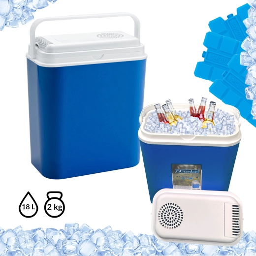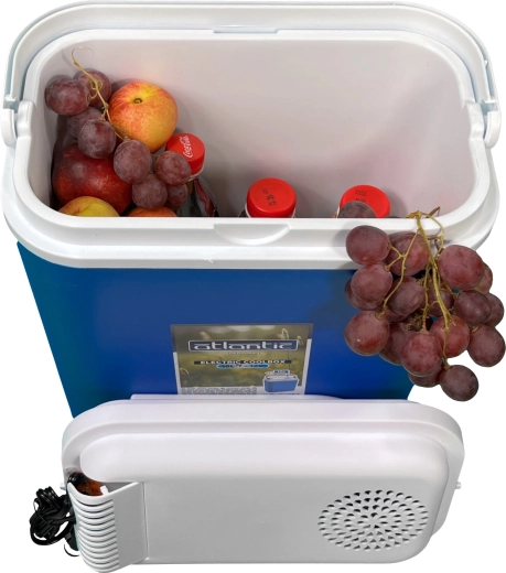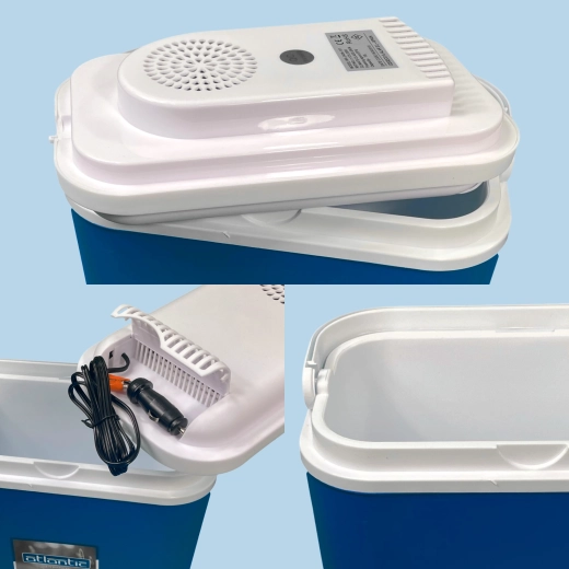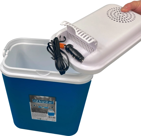 A KAMAI ATLANTIC hűtőláda 18 l űrtartalommal egyszerűen csatlakoztatható a 12 V-os szivargyújtó aljzathoz. A fedélben található, ventilációval ellátott hűtőegység hatékony légáramlást biztosít, míg a tartós szigetelés hosszú ideig alacsonyan tartja a hőmérsékletet. A belső tér magasságának köszönhetően gond nélkül elhelyezhetők az 1 literes palackok állítva is (akár három darab egymás mellett).