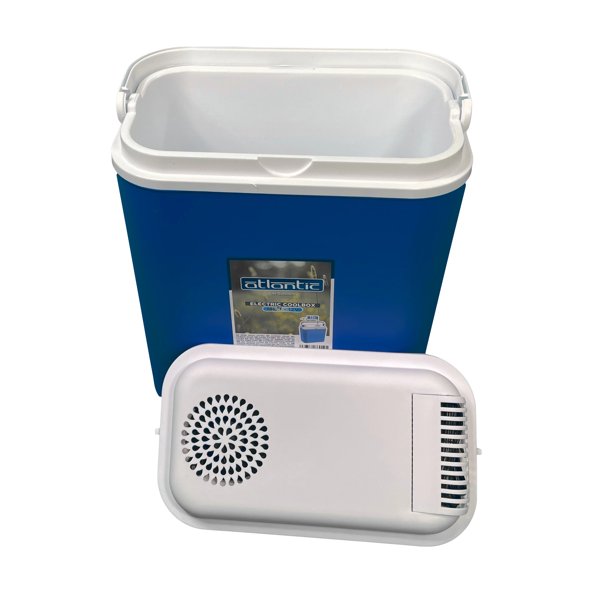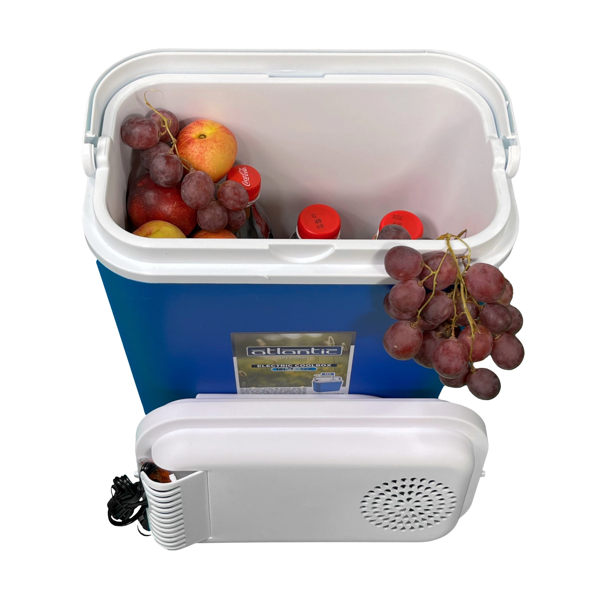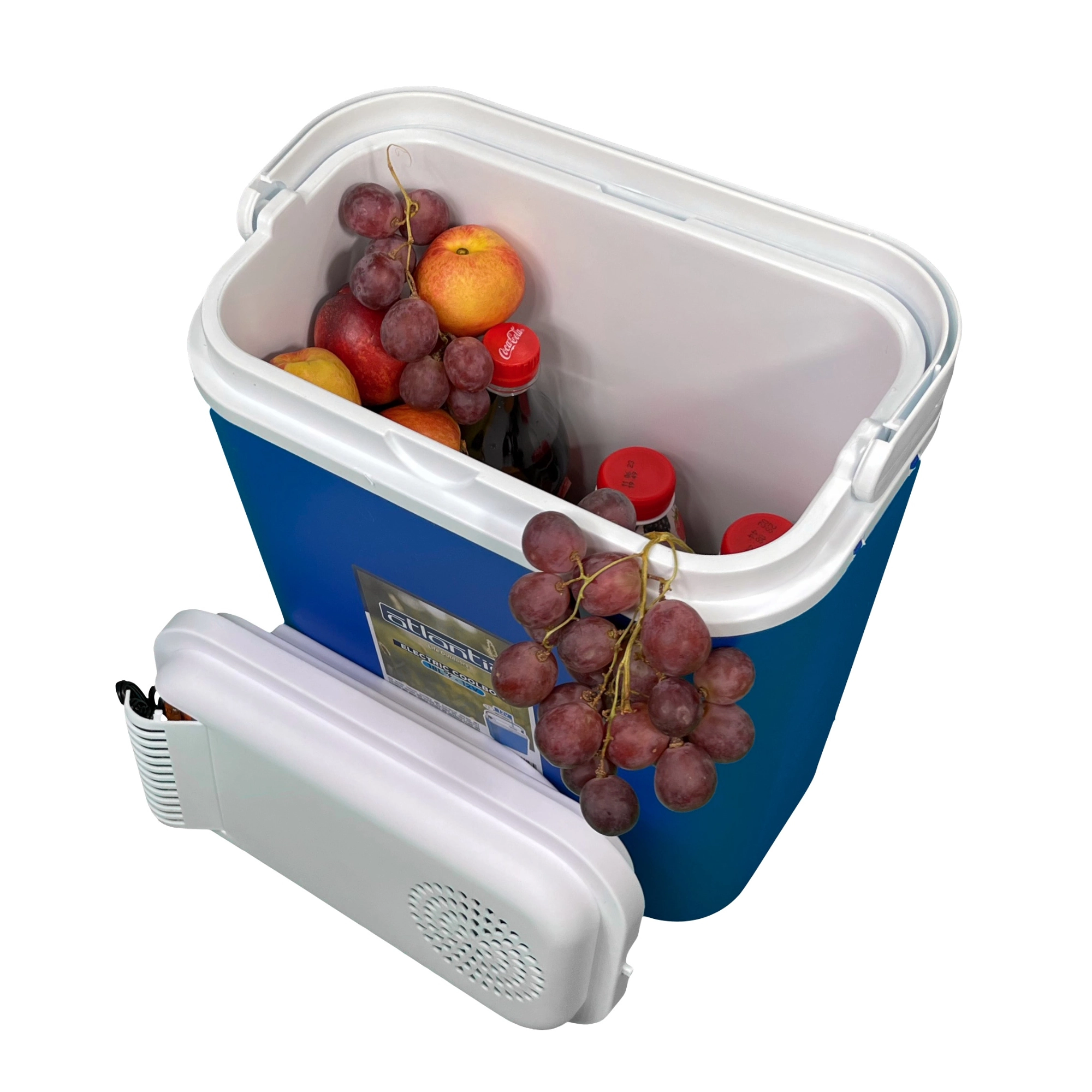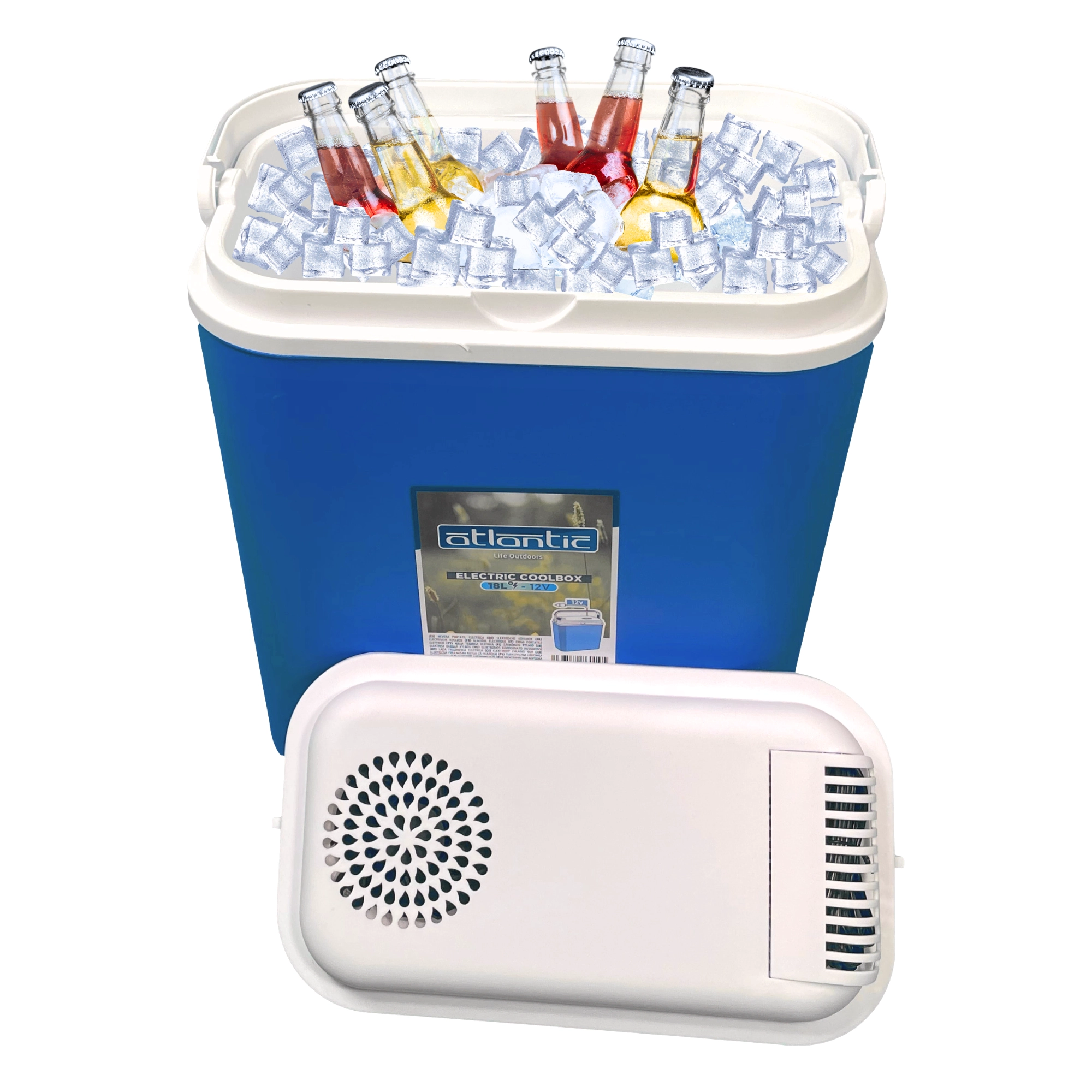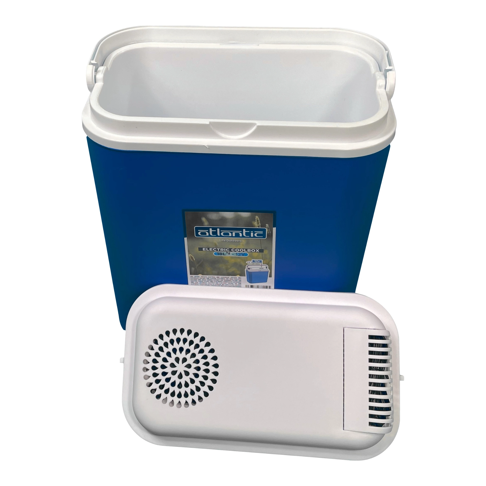 A KAMAI ATLANTIC hűtőláda 18 l űrtartalommal egyszerűen csatlakoztatható a 12 V-os szivargyújtó aljzathoz. A fedélben található, ventilációval ellátott hűtőegység hatékony légáramlást biztosít, míg a tartós szigetelés hosszú ideig alacsonyan tartja a hőmérsékletet. A belső tér magasságának köszönhetően gond nélkül elhelyezhetők az 1 literes palackok állítva is (akár három darab egymás mellett).