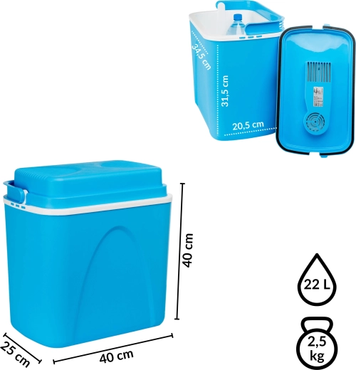 A kompakt KAMAI CB ECO 22 l autós hűtőláda 12 V-on útközben is tovább frissen tartja ételeit és italait. Az aktív hűtésnek, az alacsony tömegnek és a strapabíró kialakításnak köszönhetően ideális autóba, lakóautóba és hajóra is. EU-ban gyártva, élelmiszerek biztonságos tárolására tervezve.