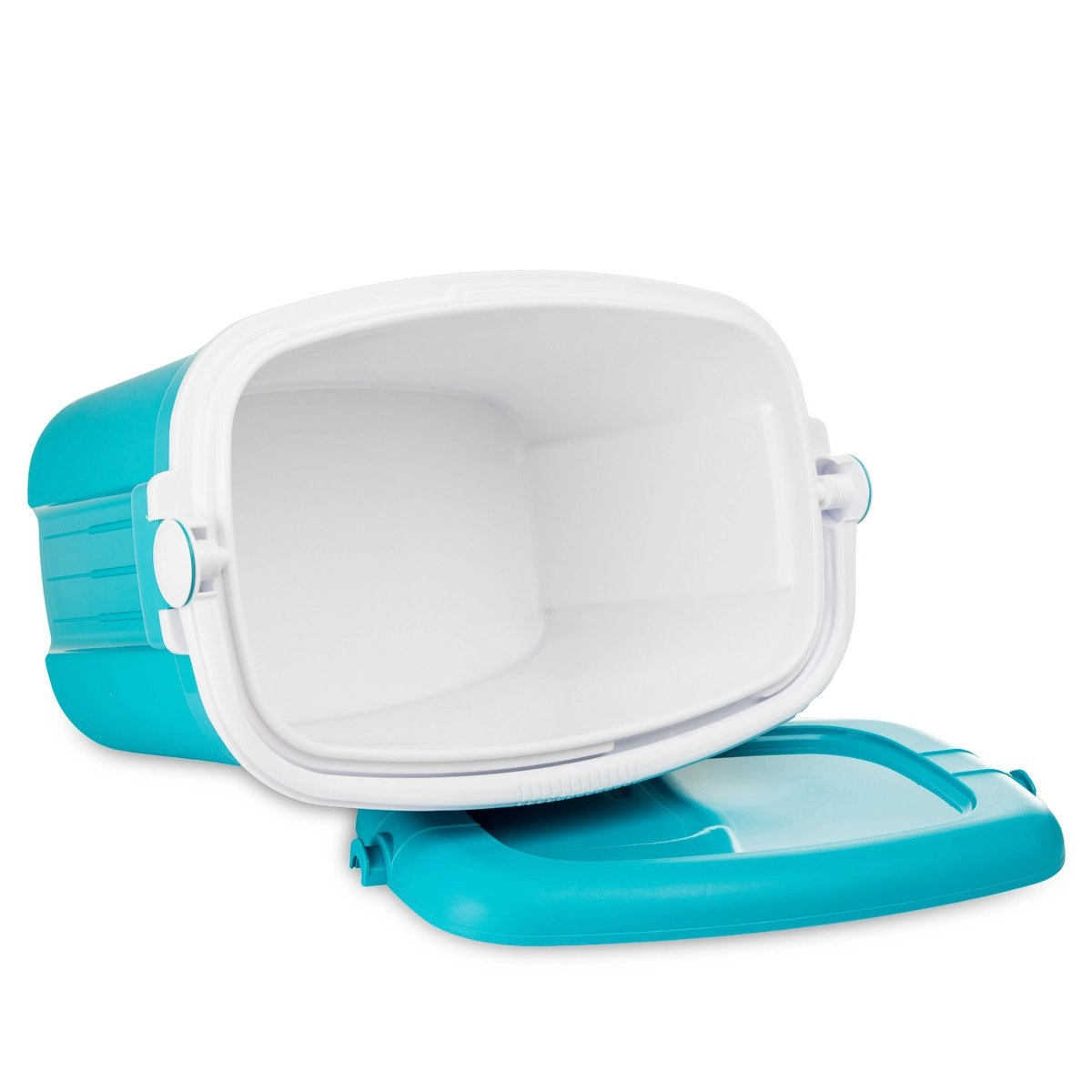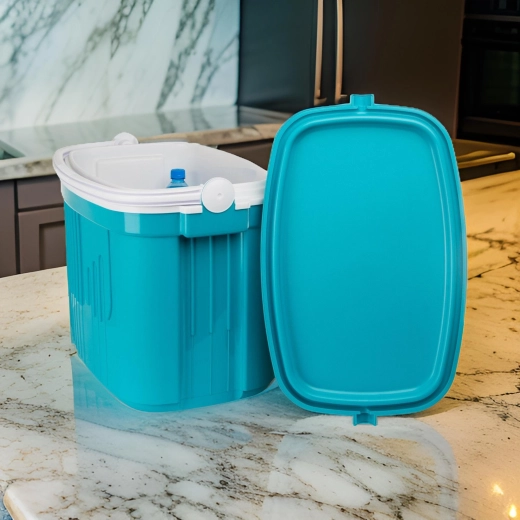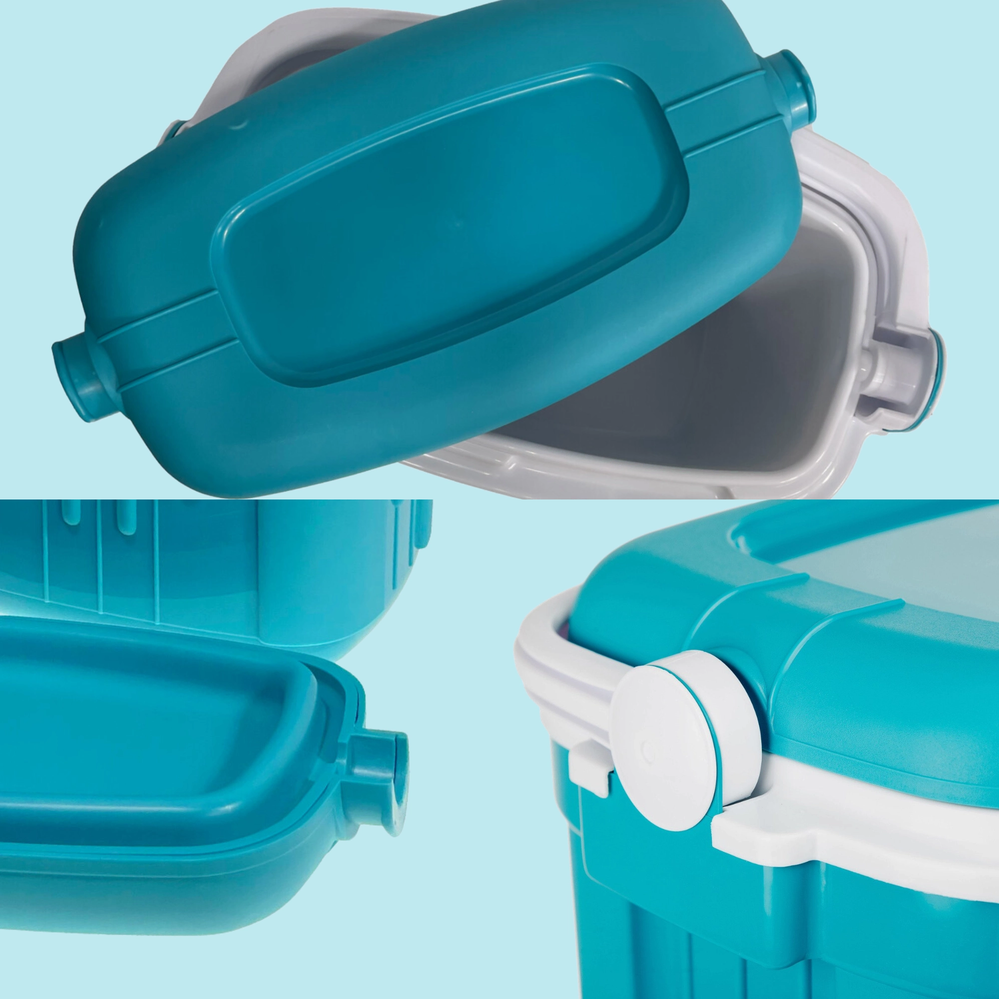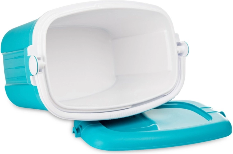 A nem deformálódó PP műanyag és a hungarocell szigetelés könnyű hordozhatóságot, tartósságot és élelmiszerrel való érintkezésre való alkalmasságot biztosít. A fogantyú egyben a fedél rögzítésére is szolgál, így nem nyílik ki.