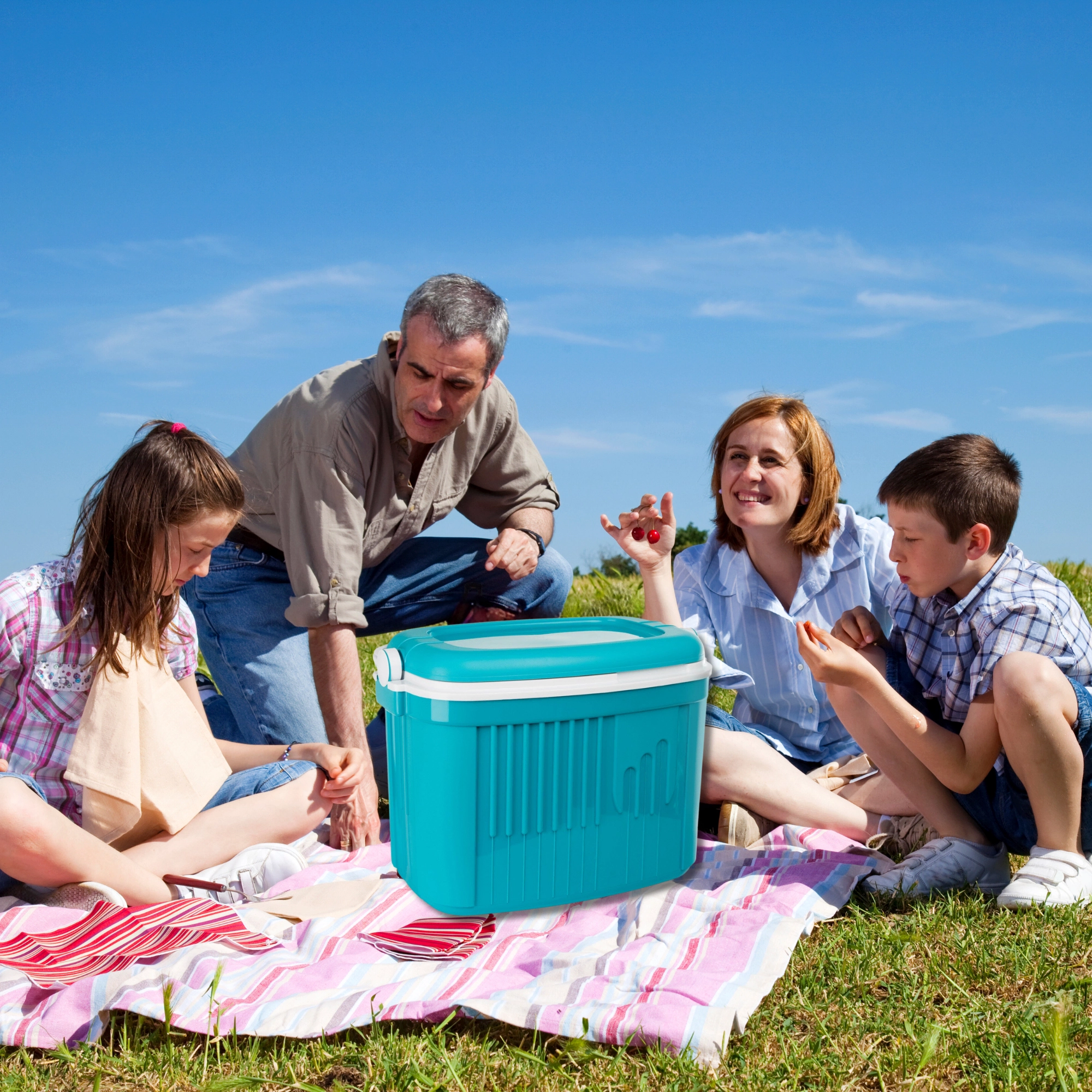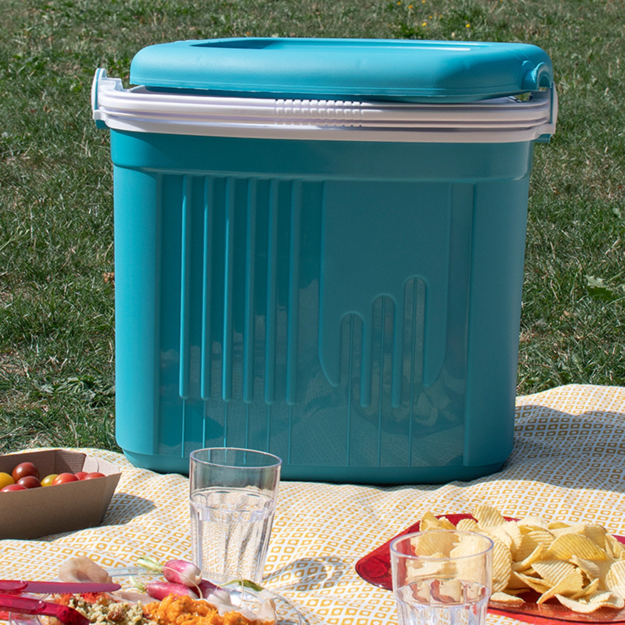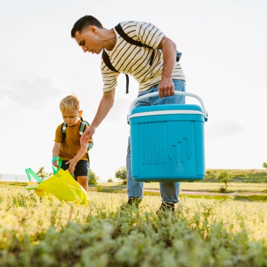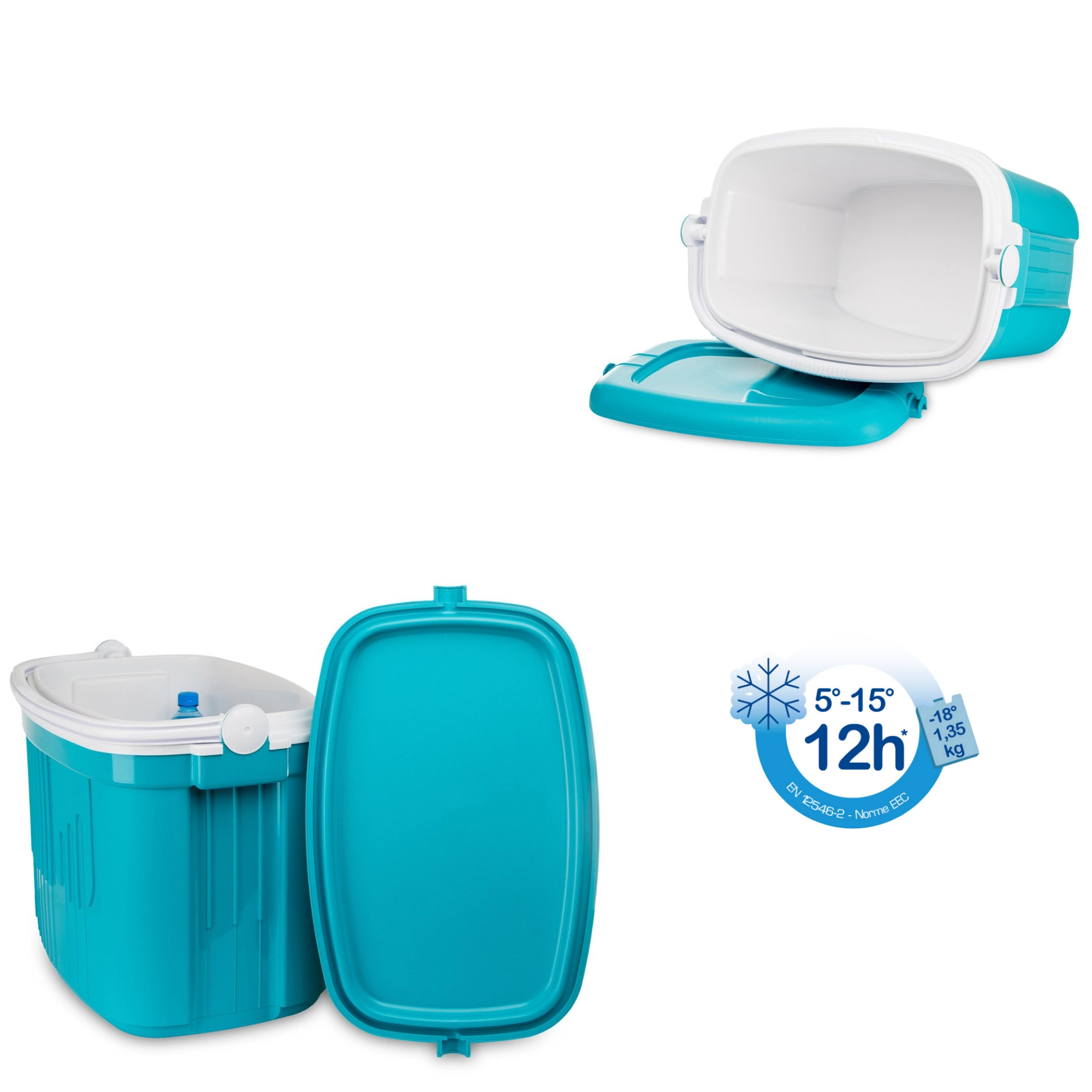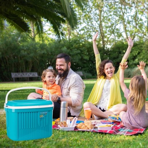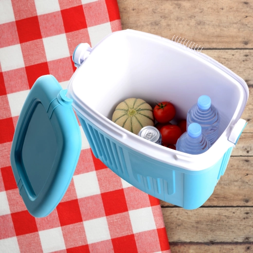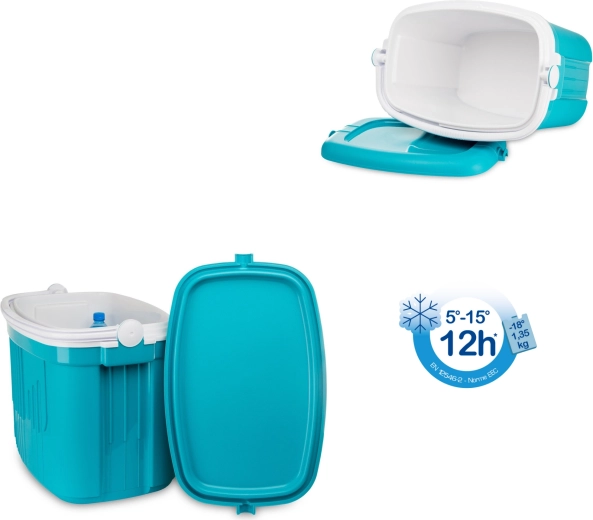 A maximális hűtési hatékonyság érdekében használjon előre lehűtött élelmiszereket és legalább 2 db 650 g-os hűtőbetétet. Az integrált fogantyú fedélzárként működik, így a doboz szállítás közben sem nyílik ki.